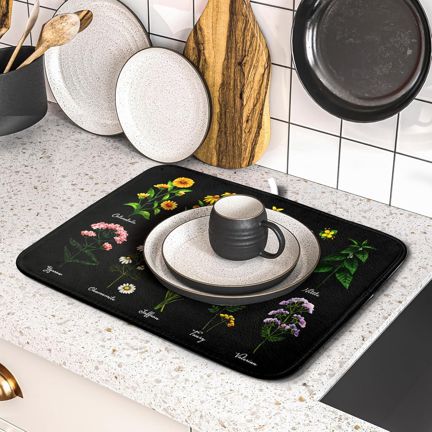 - 【Easy to Storage】This botanical wildflower design drying mat with hang rope, soft and foldable, durable, easy to storage it by hanging or folding it up in a drawer or tuck it elsewhere. Perfect for tight spaces like campers, boats and cottages where having a dual purpose item will come in handy.