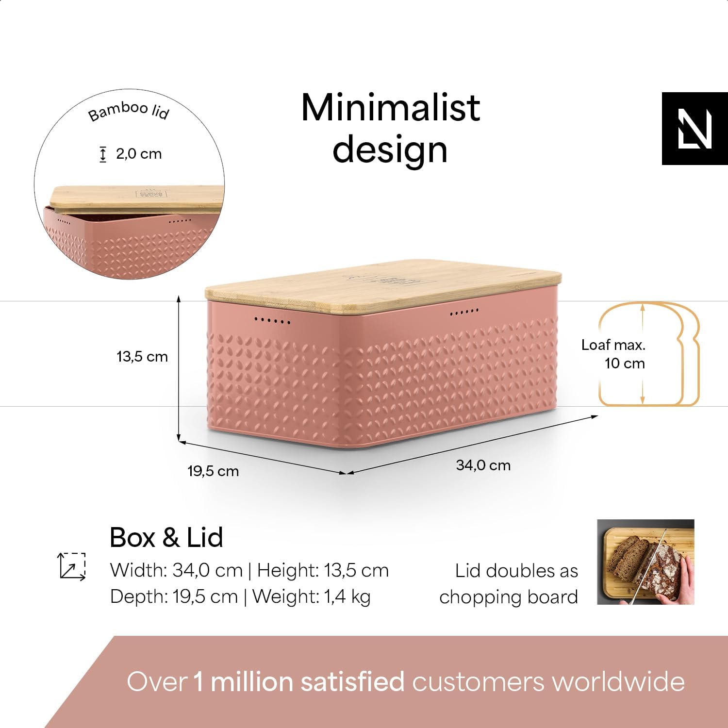 - MULTI-TALENT WITH CUTTING BOARD: The extra sturdy bamboo lid provides optimal storage conditions and is also suitable as a high-quality bread cutting board. The storage box offers enough space for several breads and pastries.