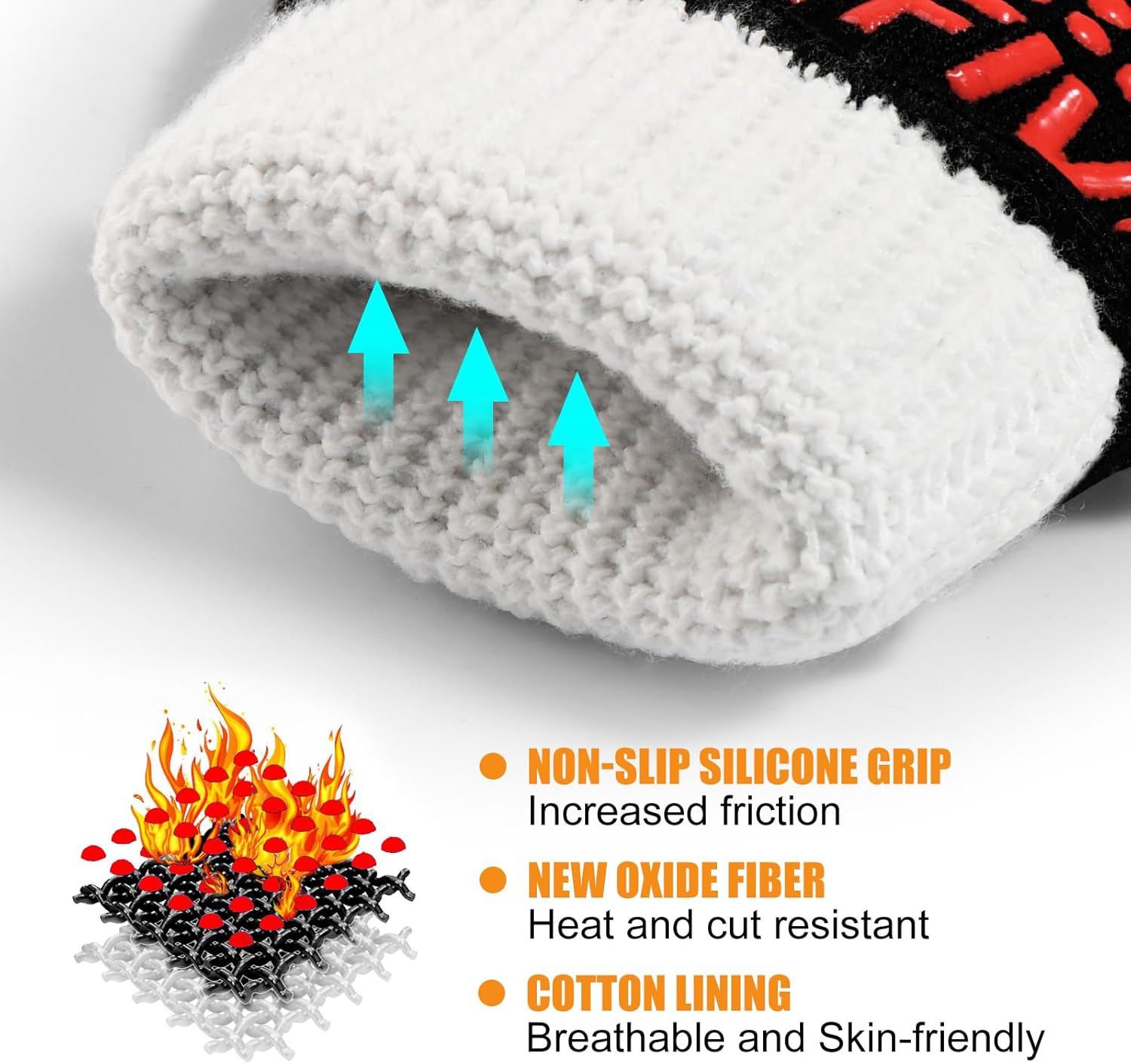 BBQ Gloves, Oven Gloves, 1472°F Extreme Heat Resistant Barbecue Gloves, Silicone Non-Slip Oven Mitts, Kitchen for Cooking, Grilling, and Baking (Red)
