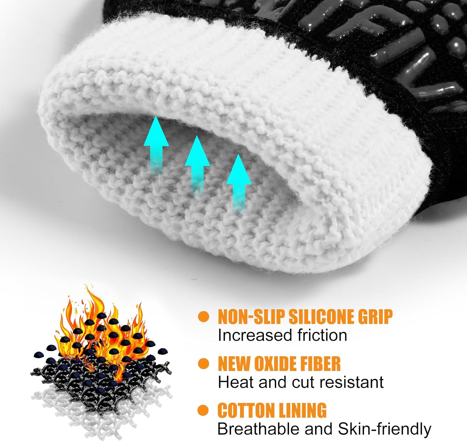 BBQ Gloves, Oven Gloves, 1472°F Extreme Heat Resistant Barbecue Gloves, Silicone Non-Slip Oven Mitts, Kitchen Gloves for Cooking, Grilling, and Baking (Black)