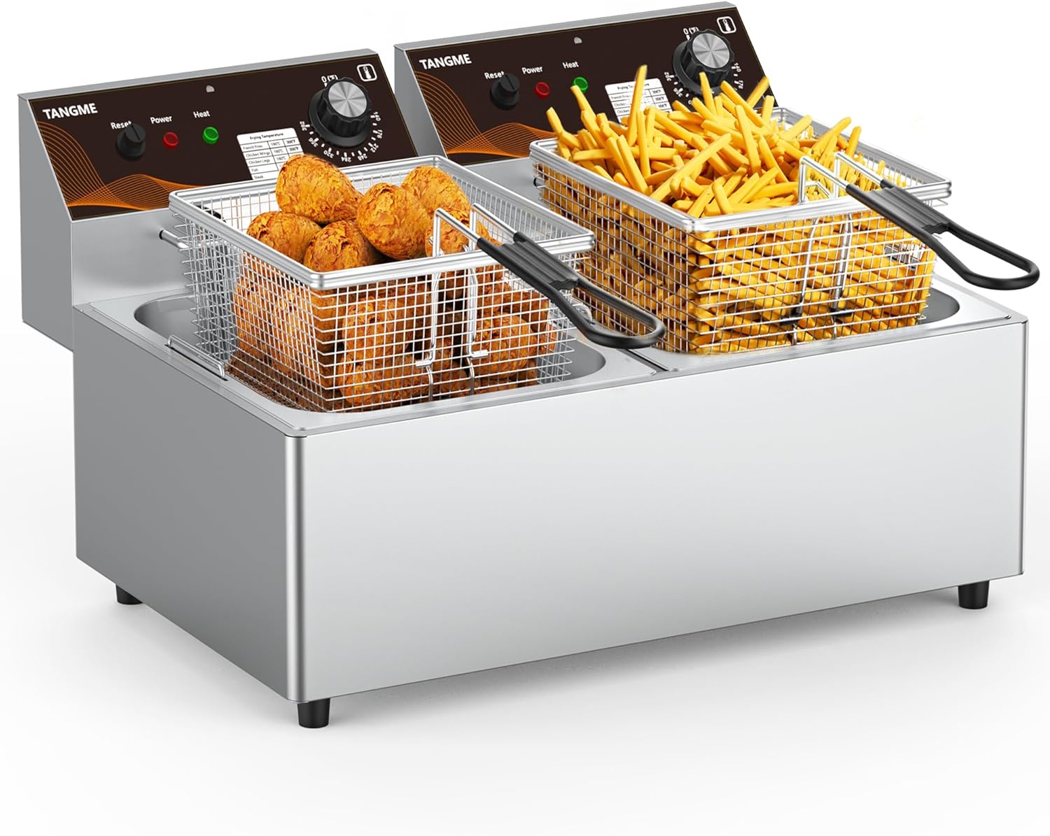 - Commercial Large Capacity : The commercial dual tank fryer with this professional fryer of 20L oil capacity, large volumes of fried snacks can be cooked. is perfect for light-duty applications like delis, small sandwich shops, and concession stands for buffalo wings, chicken, dumplings, egg rolls, shrimp rolls, mozzarella sticks, jalapeno poppers