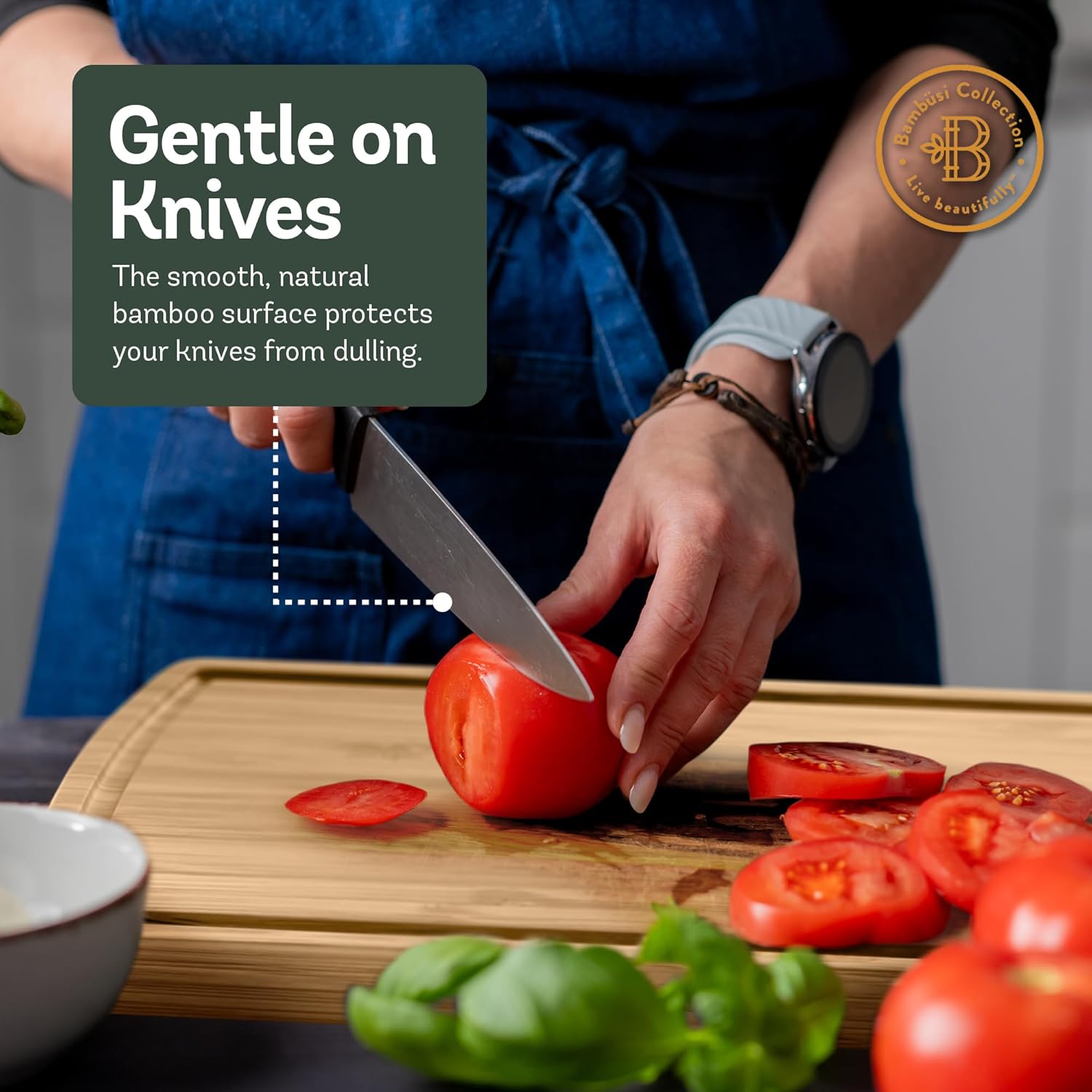 - SAFE & VERSATILE: At Bambüsi, we prioritize safety and convenience. These splinter-free cutting boards are perfect for butcher blocks, trays, and even serving. Whether you're prepping a weekday dinner or a special holiday meal for Thanksgiving, Christmas, or New Year’s, this set is your go-to kitchen gadget