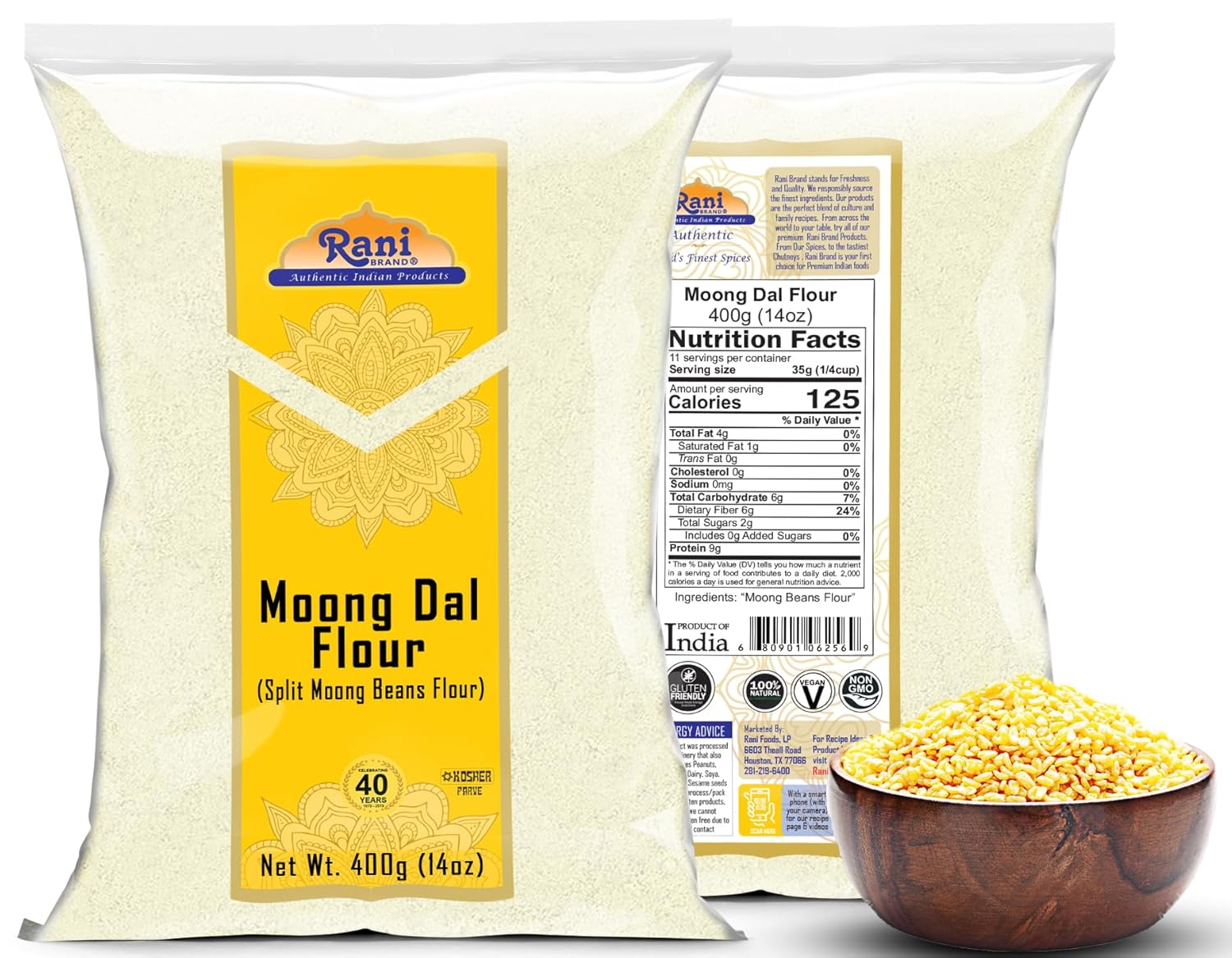 Rani Moong Flour (Mung Bean Flour, Green Gram Flour) 14oz (400g) ~ All Natural | Vegan | Gluten Friendly | NON-GMO | Kosher | Indian Origin