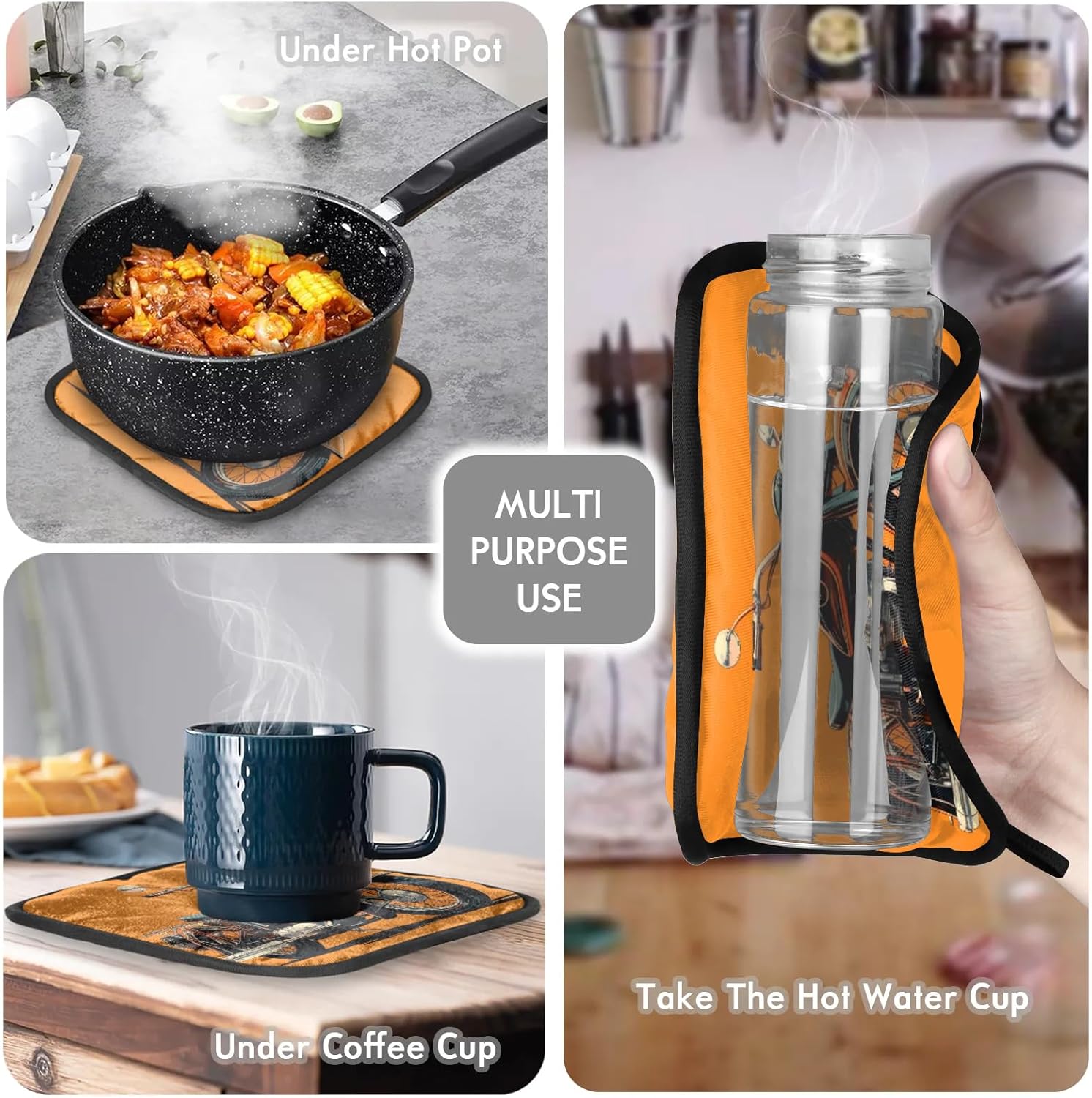 - VERSATILE USE: Our oven mitts and pot holders set are very versatile. Ideal for cooking, grilling, microwaving, cooking soups, oven serving dishes. Suitable for kitchen, restaurant, bakery, hotel, outdoor barbecue and camping accessories