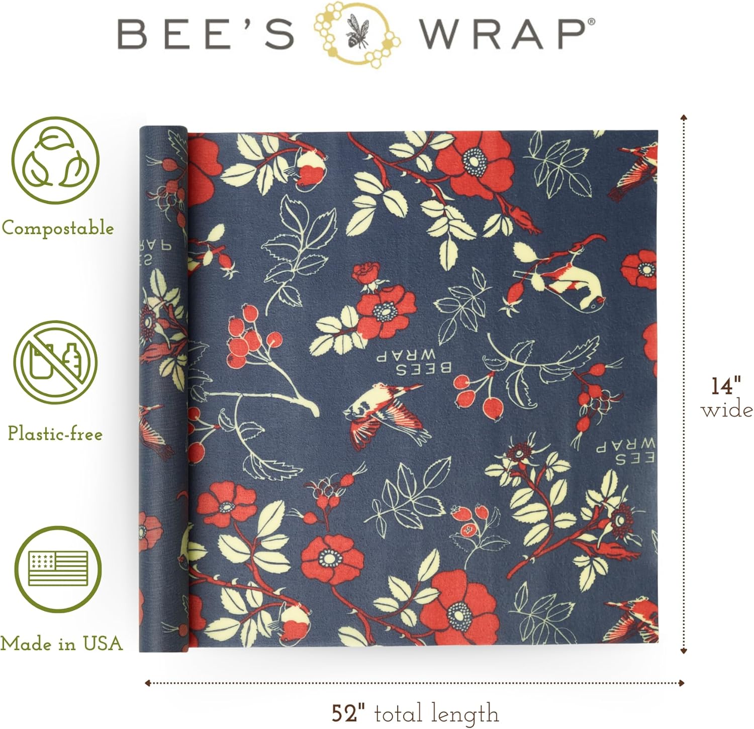 Bee's Wrap Beeswax Wraps for Food - Botanical Cut to Size 14x52" Wax Paper Roll - Made in USA Reusable Waxed Paper & Bowl Covers - Organic & Eco-Friendly Alternative to Aluminum Foil & Plastic Wrap
