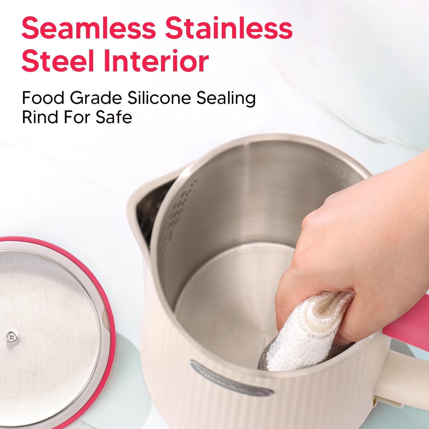 - 【Enjoy Safe and Healthy Drinking Water】~ Made from the seamless 304 stainless steel interior (stainless steel liner, stainless steel spout, stainless steel lid) and the food-grade material sealing ring on the lid, this electric tea kettle provides hot drinks with the pure flavor and long-term operation. The wide opening and removable lid make the electric water boiler kettle easy to reach hand in for cleaning.