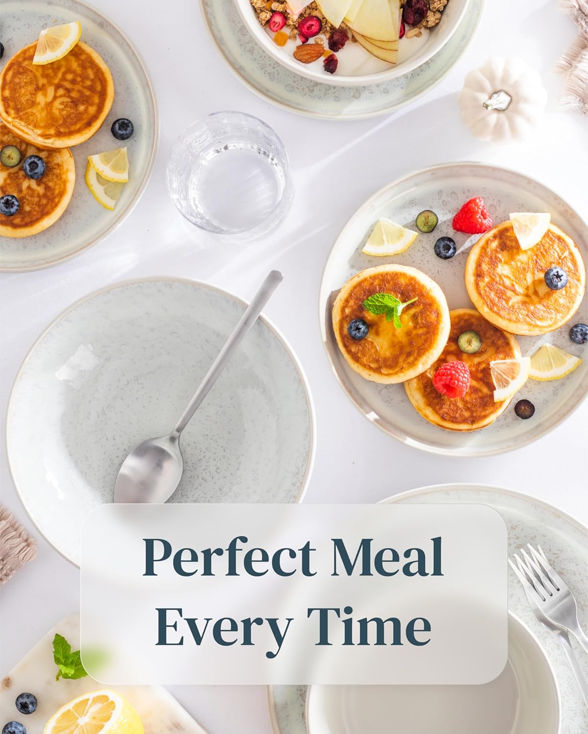 - ✅ DURABLE QUALITY THAT LASTS: Each piece is crafted from high-quality stoneware with a fired, glazed, and scratch-resistant finish, perfect for those who appreciate durability and refined style in their dinnerware.