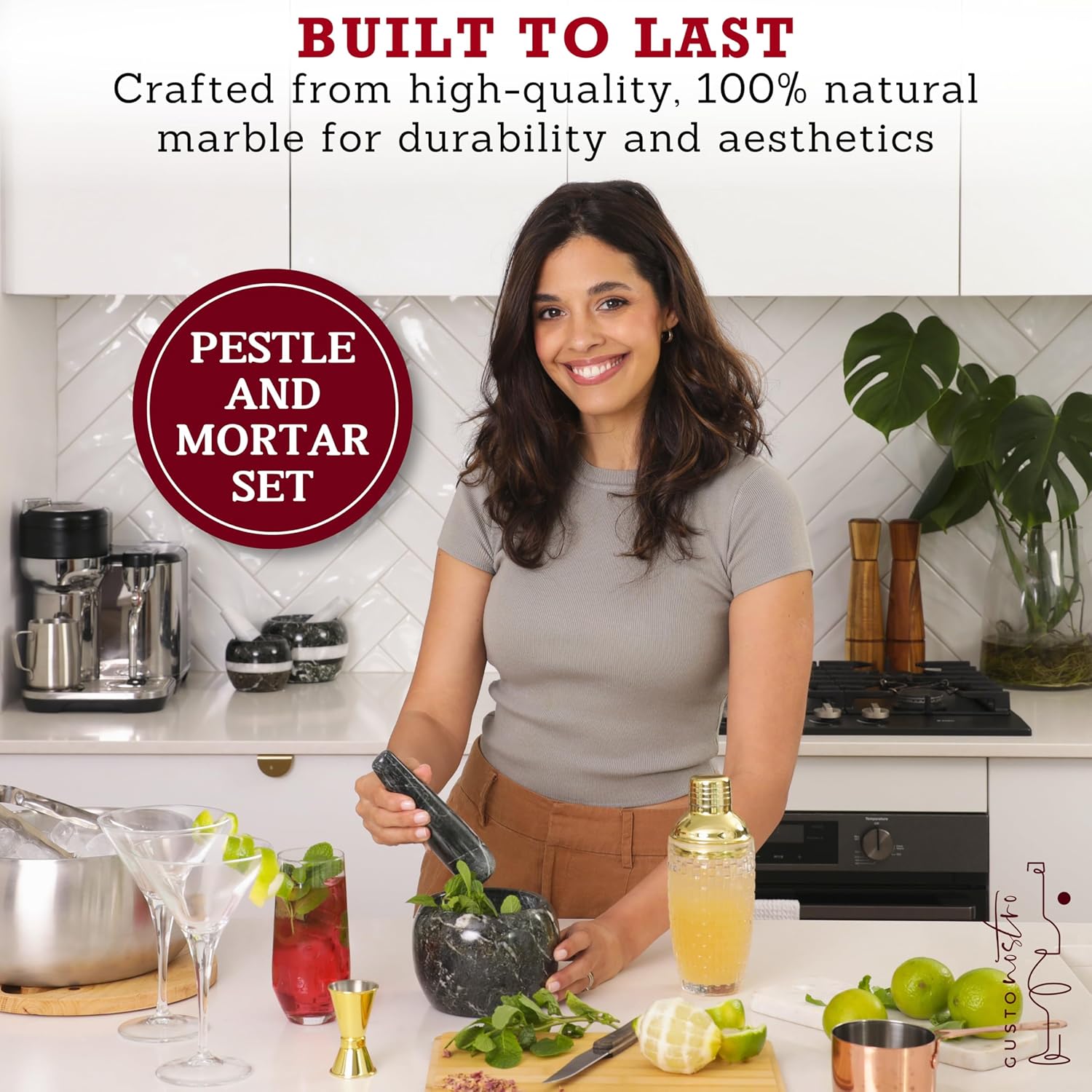 Gusto Nostro Natural Marble Mortar and Pestle Set | 6 Inch - 3.5 Cup Extra Large Mortar Pestle Set for Grinding Herbs, Nuts, Grains | Pesto Grinding and Guacamole Stone Bowl | Marble Spice Crusher