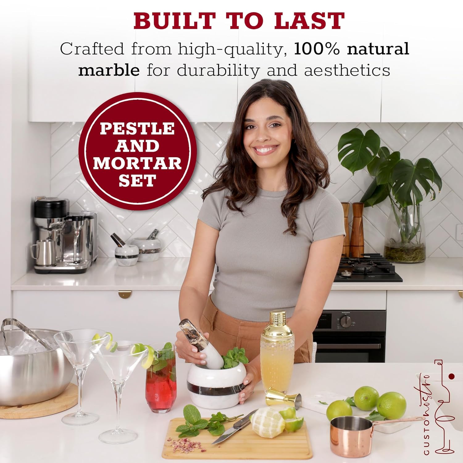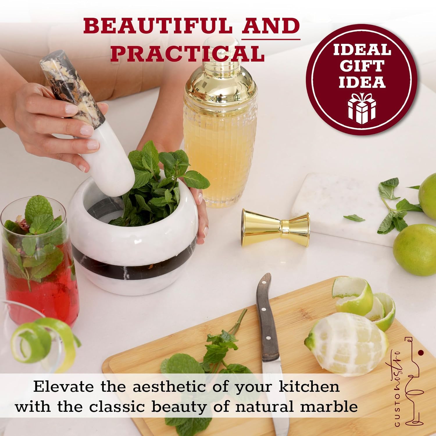 - LUXURIOUS KITCHEN MASTERPIECE This pestle and mortar set, designed with enhanced functionality and aesthetics, is an ideal gift for any kitchen enthusiast, Crafted from premium marble ensures optimal grinding performance, perfect for both novice cooks and seasoned chefs alike