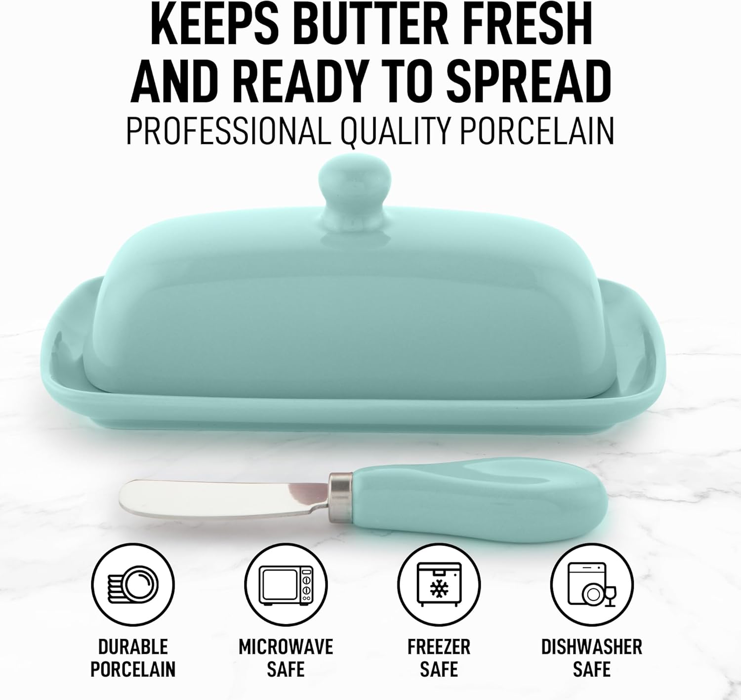 - PREMIUM QUALITY PORCELAIN: This elegantly designed butter stick holder, made of high-quality porcelain, adds durability and sturdiness. It is microwave, oven, and freezer safe, making the butter tray fit for hot and cold temperatures. It can be easily cleaned in the dishwasher or with a soft cloth.