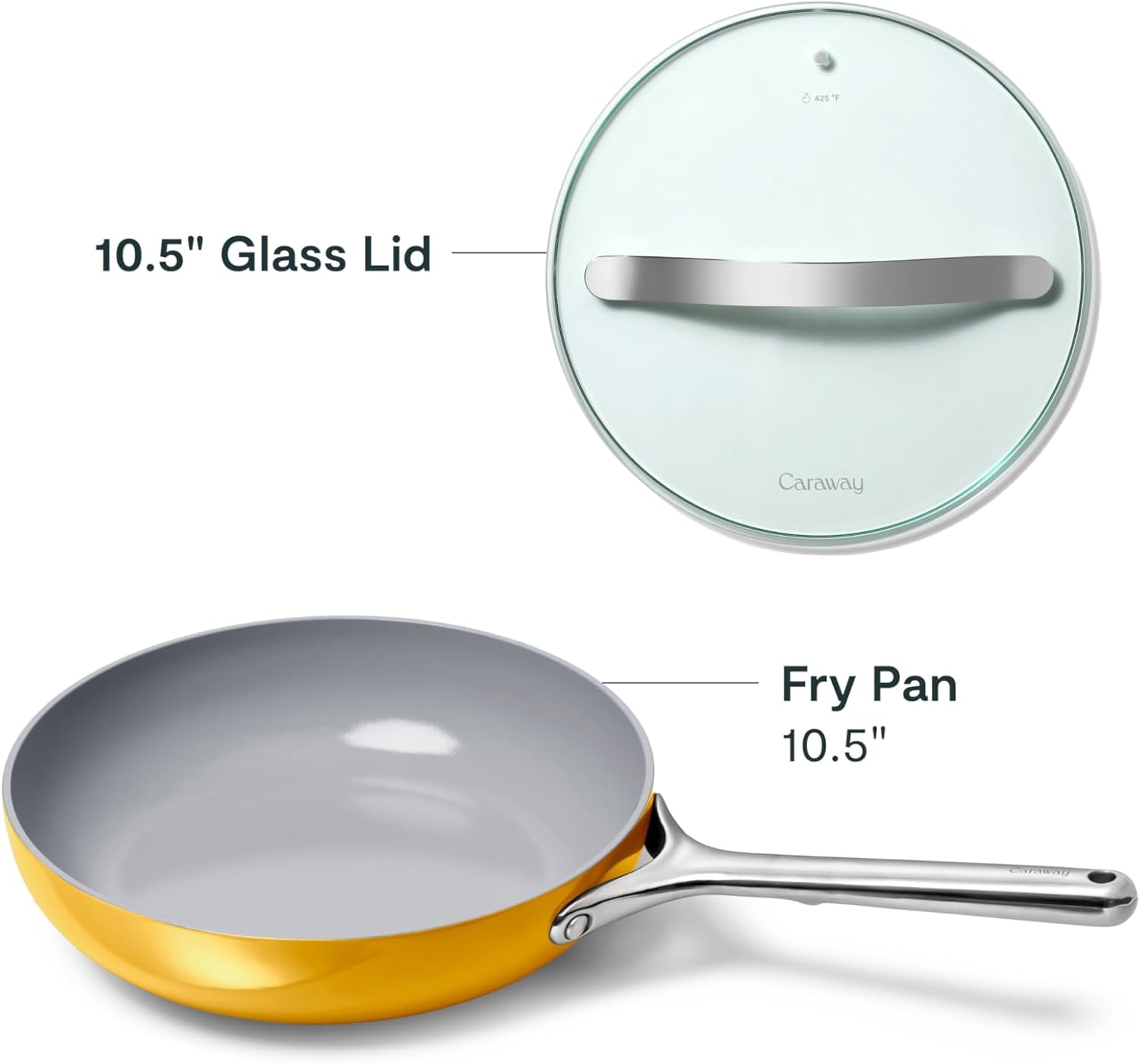 Caraway Nonstick Ceramic Frying Pan With Glass Lid (2.7 qt, 10.5") - Non Toxic, PTFE & PFOA Free - Oven Safe & Compatible with All Stovetops (Gas, Electric & Induction) - Marigold