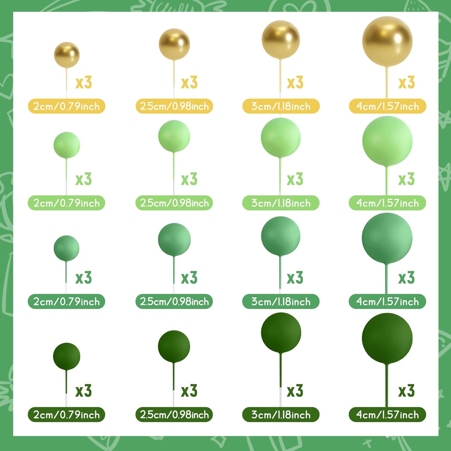 48 Pcs Balls Cake Topper Decorations Balloon Cupcake Toppers Foam Cake Topper Balls Cake Balls Decorations for Birthday Party Cake Decorating (Green, Gold)