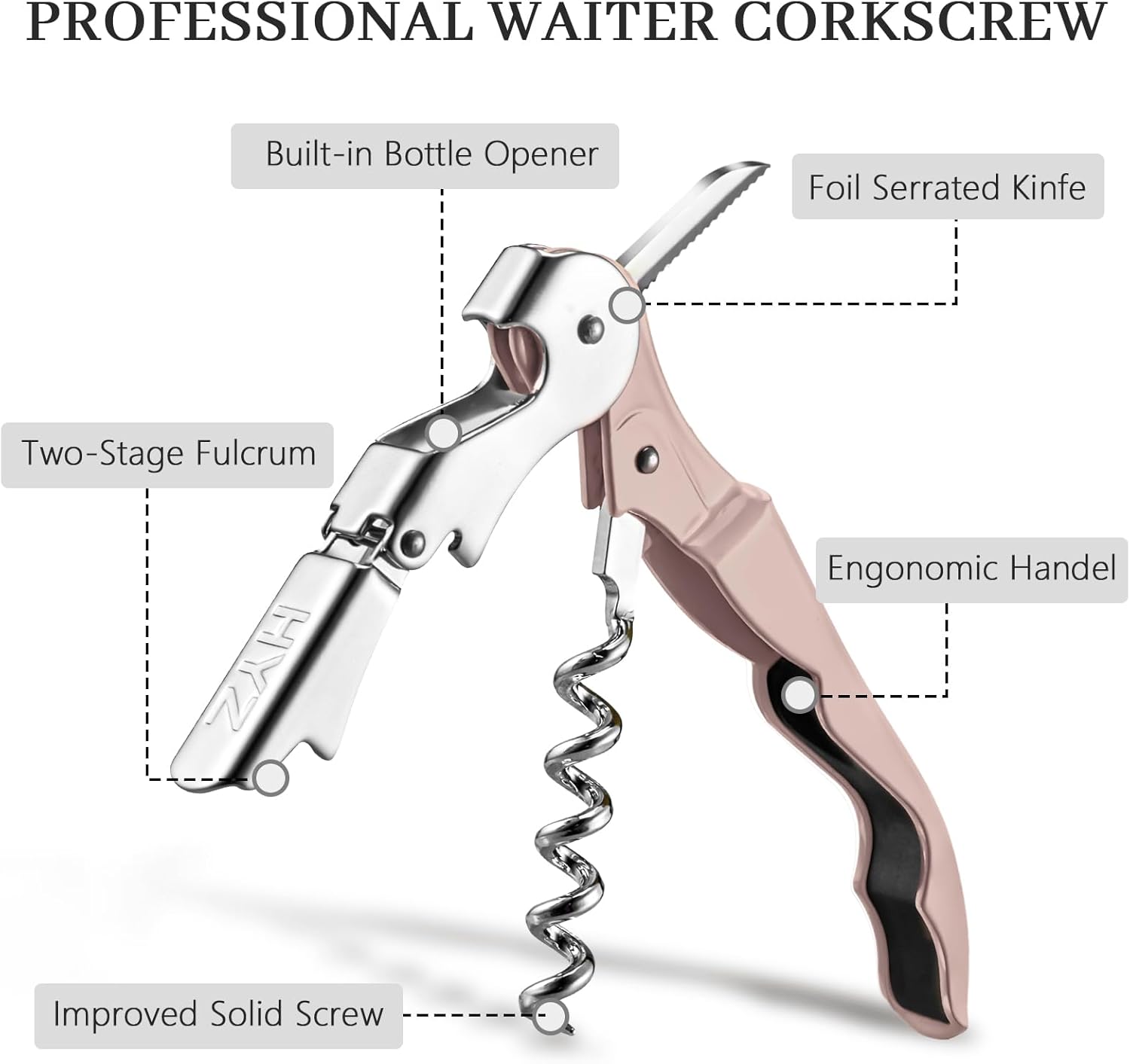 HYZ 2-Pack Wine Opener Waiter Corkscrew, Professional Wine Key for Servers, Bartender with Foil Cutter, Manual Wine Bottle Opener Double Hinged (Dark Pink)