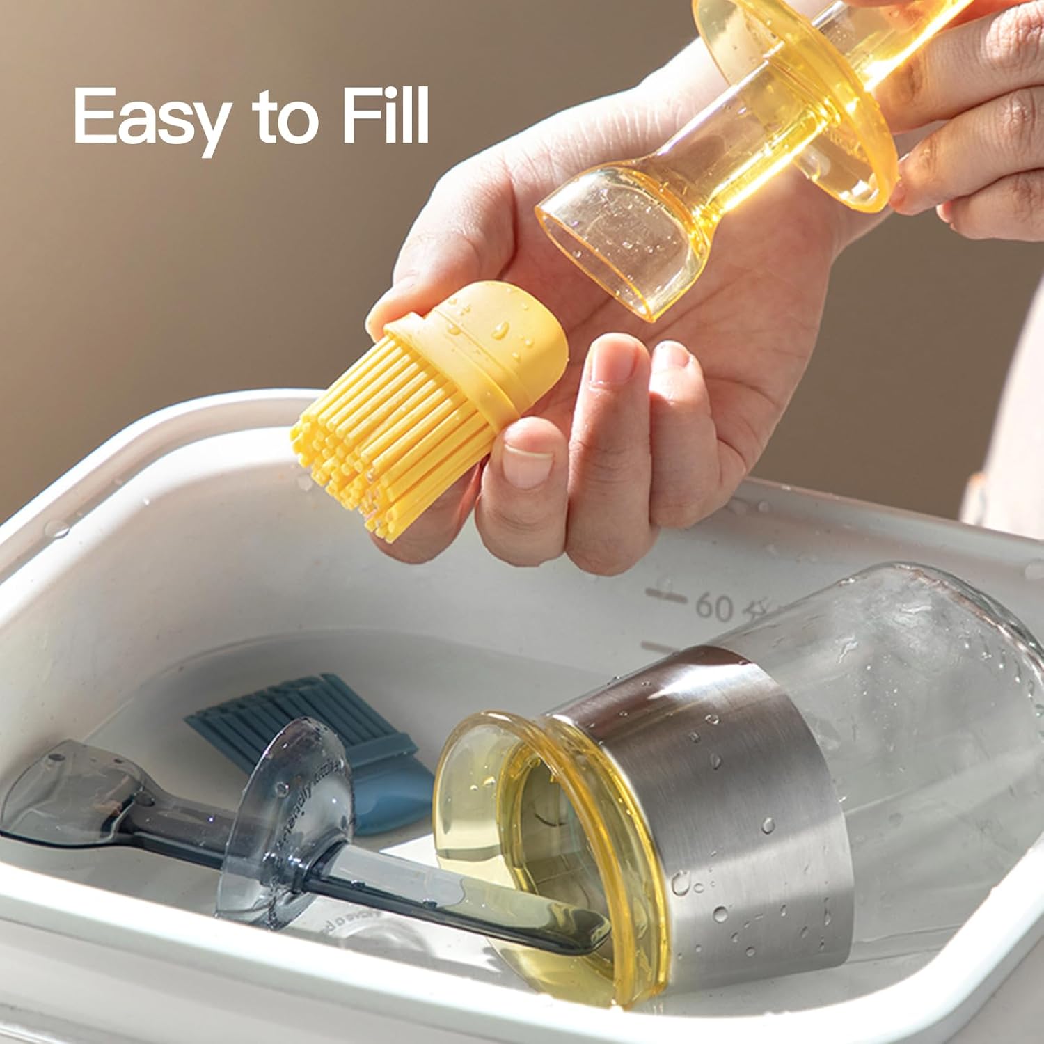 - 【Precise Oil Control】This kitchen oil dispenser comes with cooking silicone brushes for oils and sauces, the design of the oil separator helps to avoid waste and control the amount of oil or sauce, while also ensuring the cleanliness of the table and cooking surfaces, the brush also helps to distribute the oil evenly on the food, thus preventing the oil from sticking to the pan and helping you to control the amount precisely
