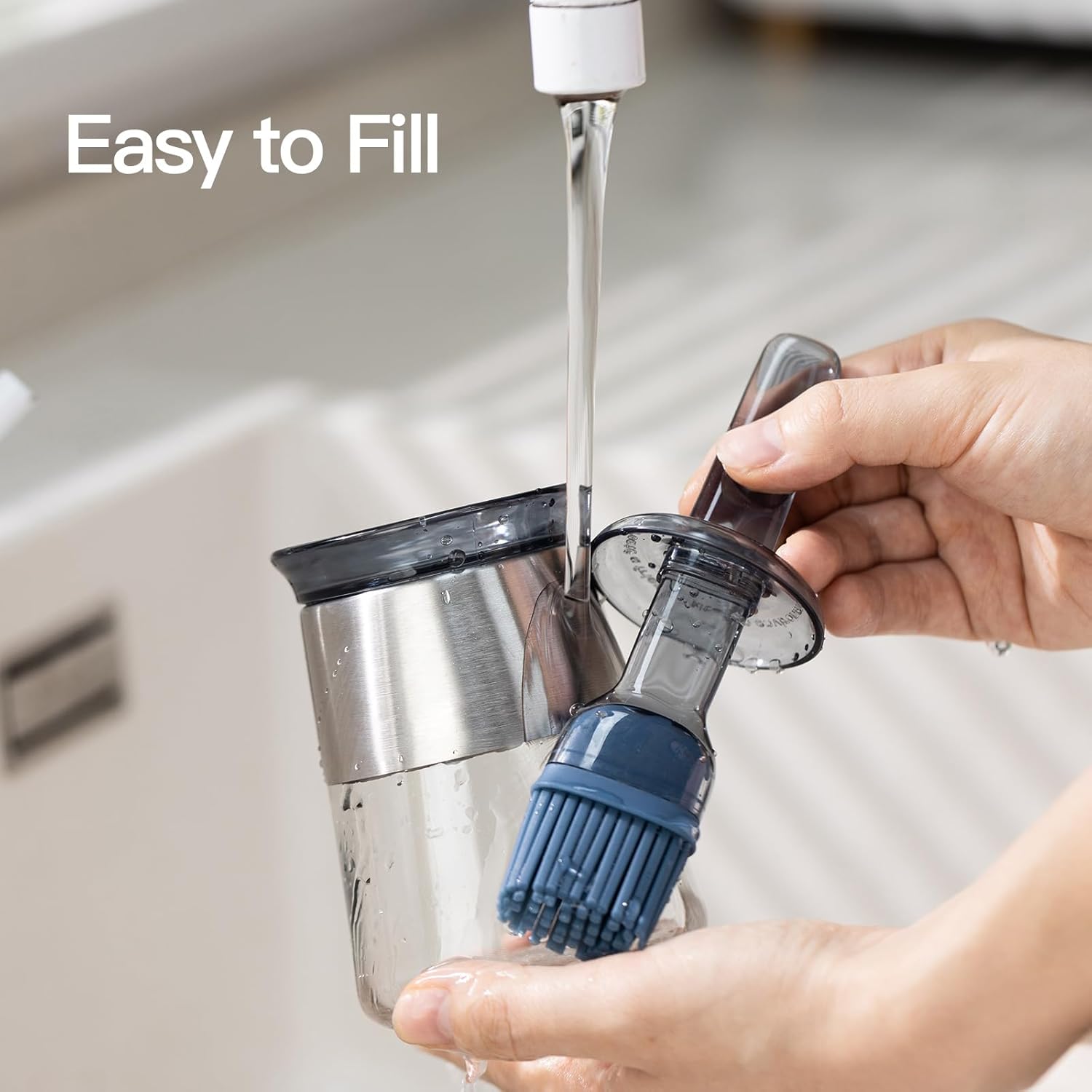 - 【Portable Silicone Oil Brush Bottle】This oil brush bottle for cooking has a beautiful appearance, kitchen oil dispenser bottle mouth with a widened caliber for easy refueling, you can use the silicone brush brush to brush oil on pots and pans or grilled food. The silicone oil dispenser brush with olive oil container makes brushing oil more convenient than traditional dispenser brush, safe and healthy