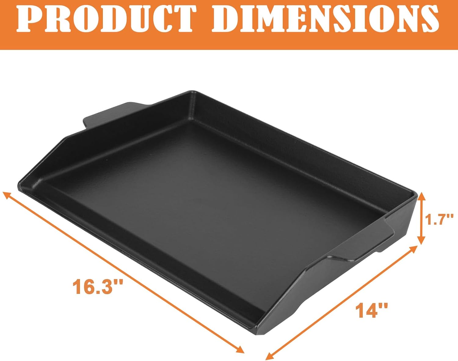 - [Multifunctionality]-Dimensions: 18.5" L×14" W×2.5" H, our griddle is designed to fit virtually any grill or 4 burner range oven. Whether you're searing steaks, grilling vegetables, or cooking a hearty breakfast, this versatile griddle offers consistent heat retention and even cooking results