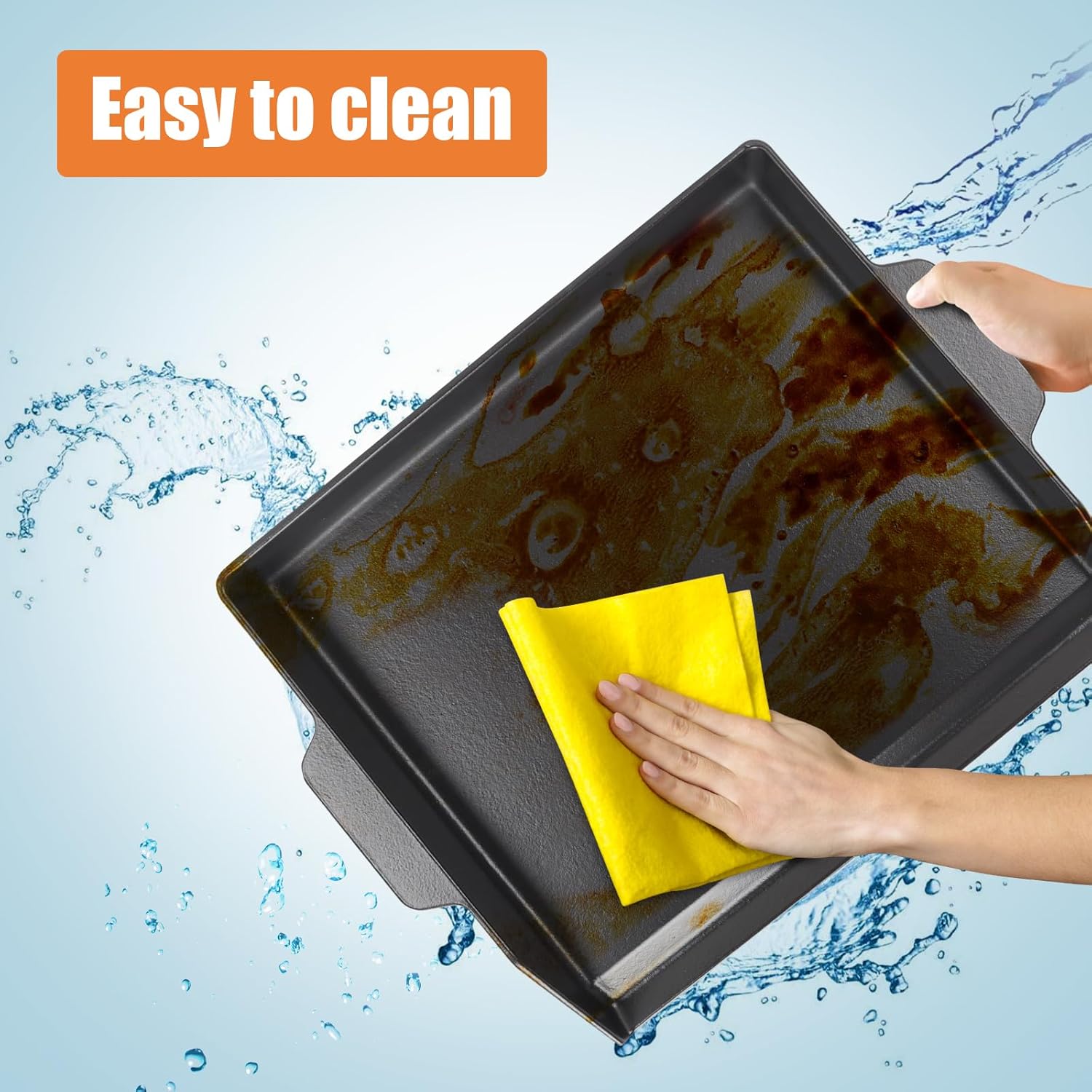 - [Easy to Clean]-Our cooking griddle features a unique grease trough that effectively collects dripping grease, making cleanup a breeze. Say goodbye to the hassle of scrubbing off stubborn stains and enjoy more time savoring your delicious meals
