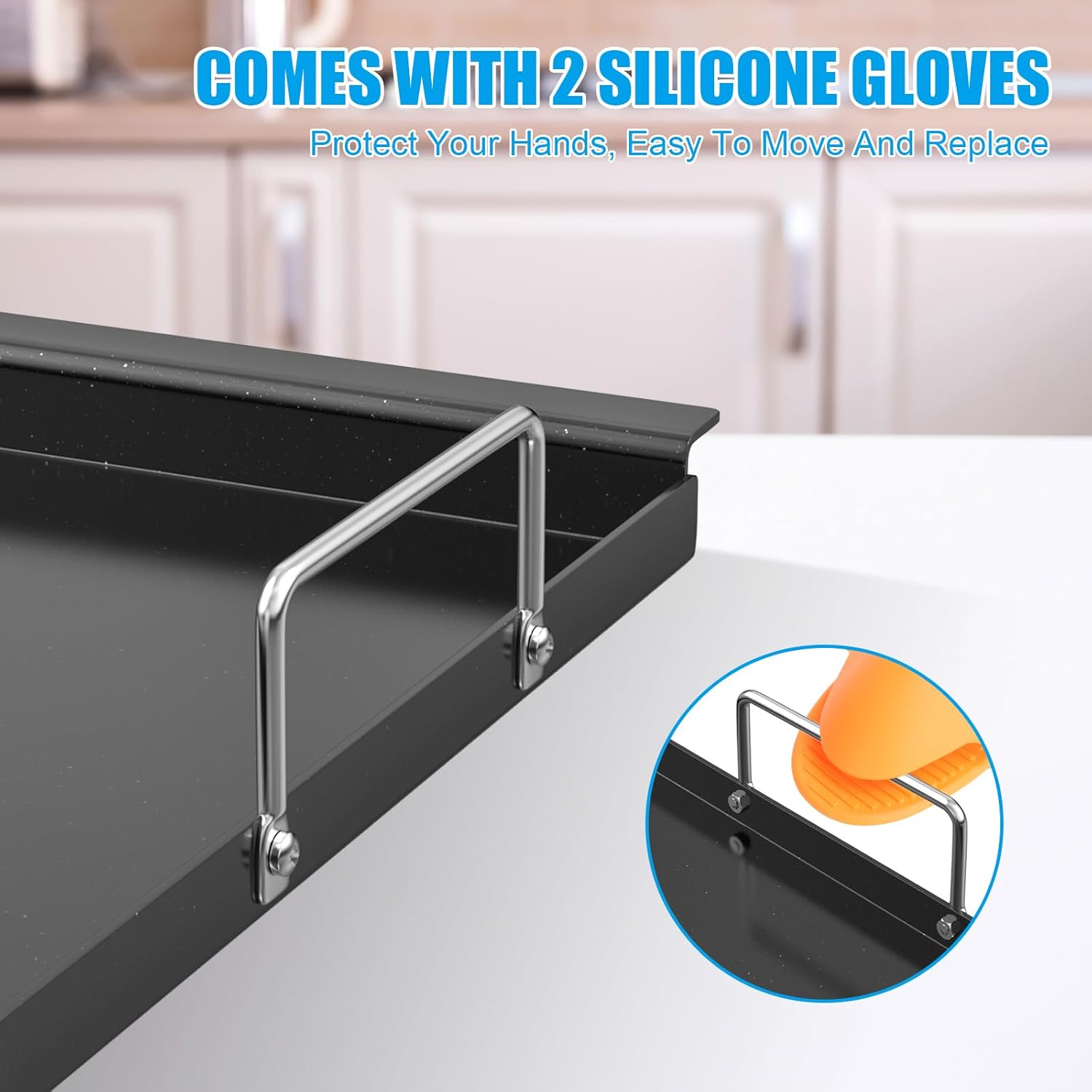- [Built to Last]- This griddle plate is made with high-quality stuff that's gonna withstand the heat ! The nonstick coating is tough enough to resist rust and distribute heat evenly, so you get perfect results every time. Plus, it's built to last, so you can use it for ages without worrying about it falling apart.Dimension:17"x23.6"