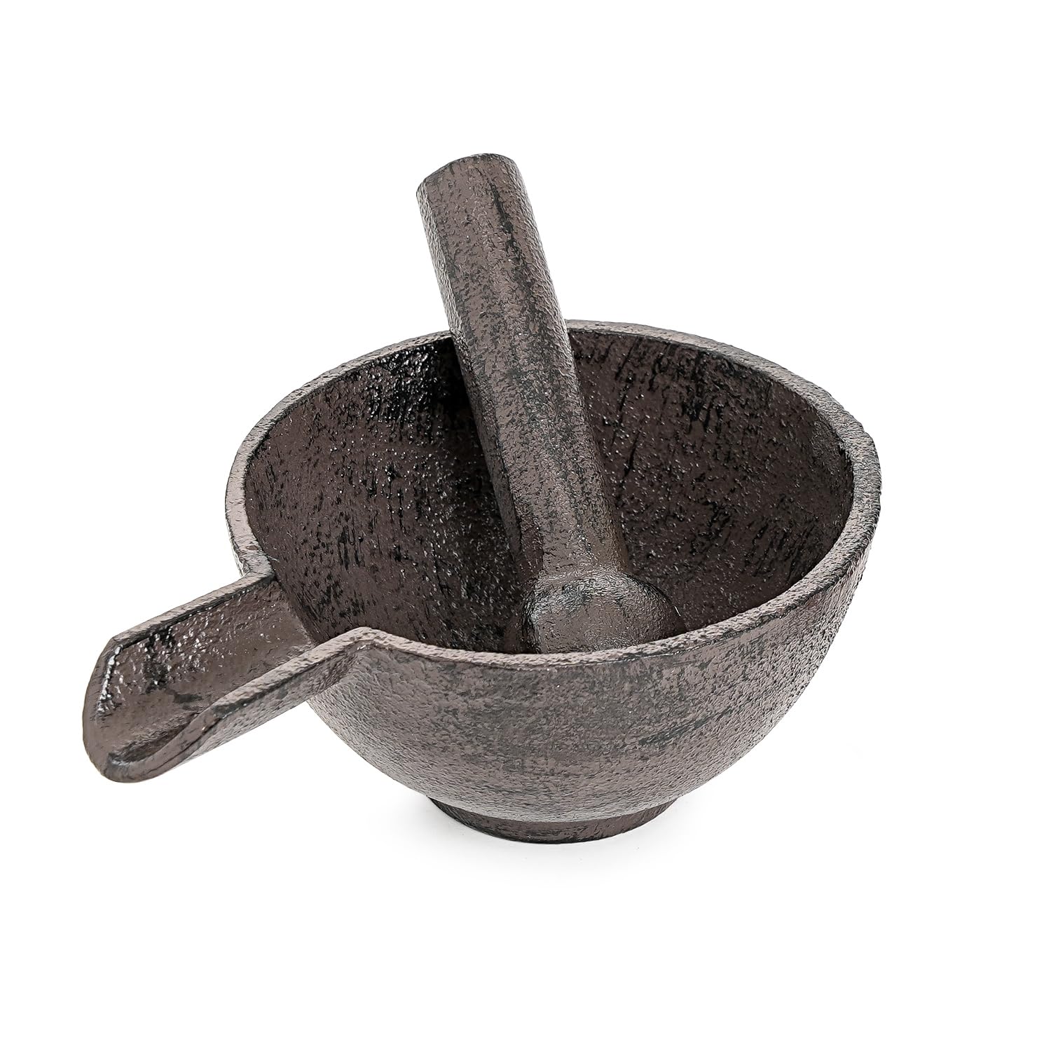 - Kitchen Tool: This cast iron grinding set is great for a multitude of recipes. It is durable enough tp be handed down. The mortar has a spout for pouring and for resting the pestle.