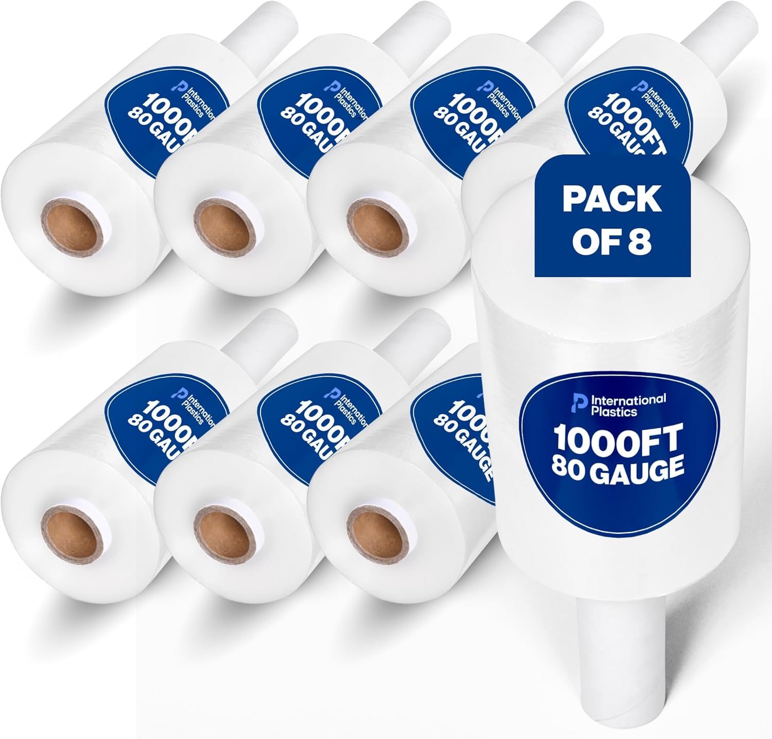 International Plastics Co. 18" Plastic Stretch Film/Wrap 1200ft 500% Stretch Clear Cling Durable Adhering Packing Moving Packaging Heavy Duty Shrink (5" Products, 8 Pack)