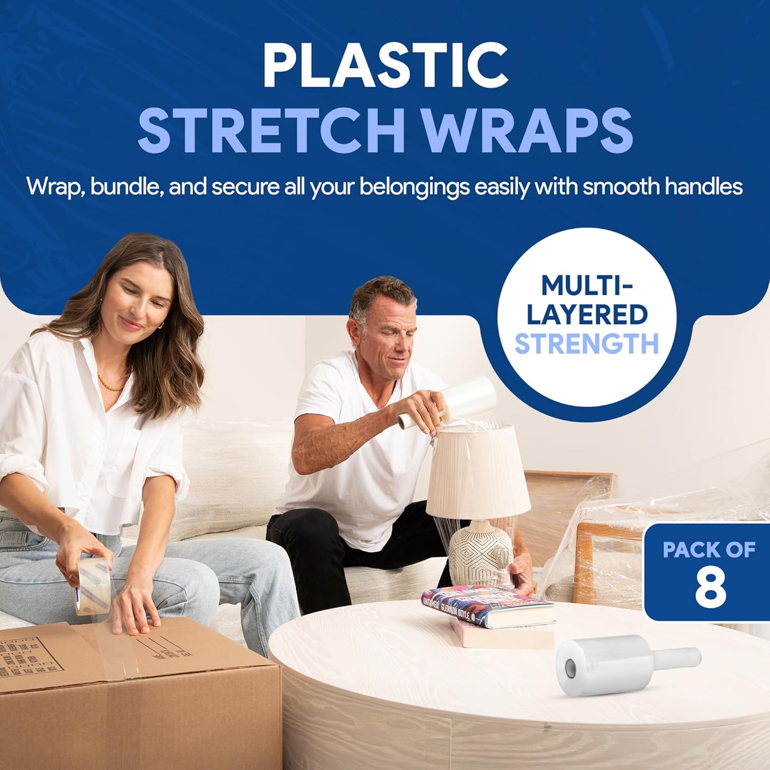- EFFORTLESS PACKING & STORAGE: Ditch the messy tapes and frustrating twine! This stretch film conveniently wraps furniture, boxes, and more, leaving no residue behind. Perfect for space-saving storage too!