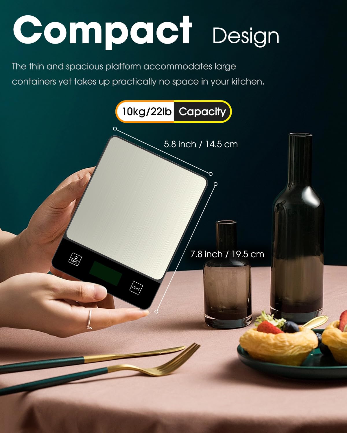 Mik-Nana Food Scale, 22lb Digital Kitchen Scale Weight Grams and Oz for Baking Cooking Coffee Meal Prep Package Postage, 6 Units with Tare Function, 1g/0.04oz Precise Graduation (Black)