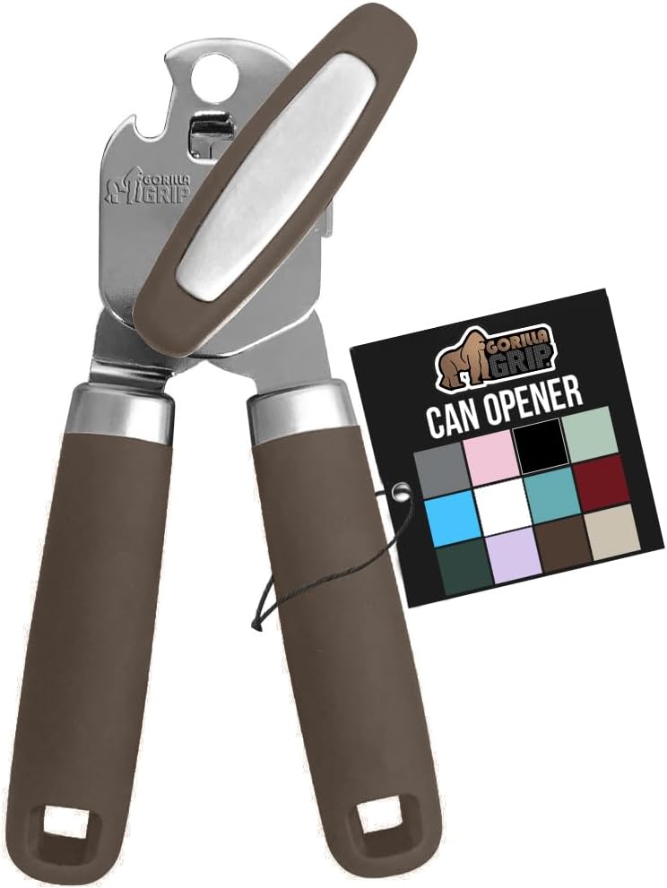 GORILLA GRIP Heavy Duty Stainless Steel Smooth Edge Manual Can Opener and Bottle Openers, Soft Comfortable Handle, Oversized Handheld Turn Knob, US Designed Multifunctional Kitchen Tool, Coffee