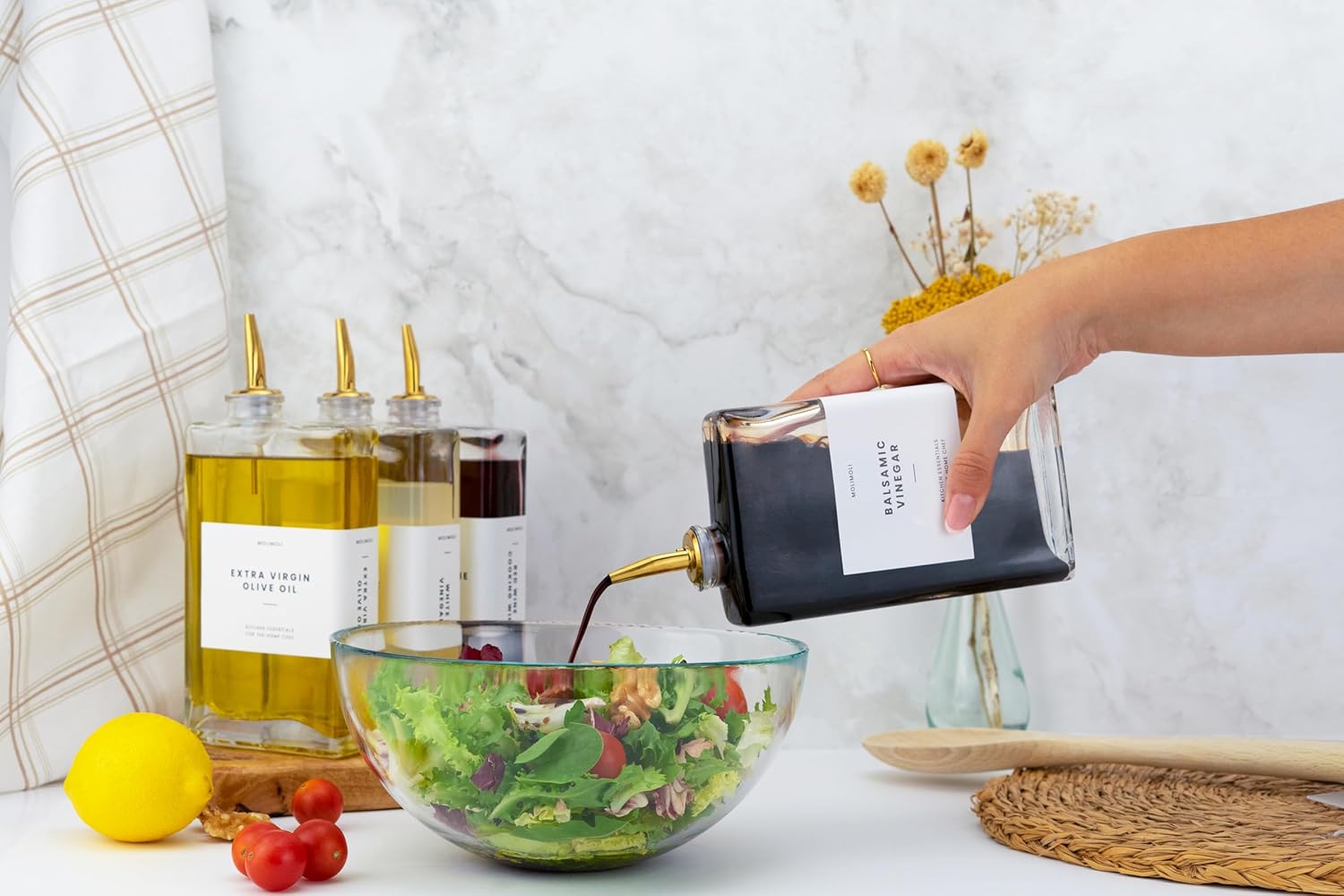 - FAST AND CONSISTENT FLOW: Our bottle spout has been engineered to deliver a fast, consistent flow of oil or liquor. The weighted pourer is specifically designed for one-handed control and pouring accuracy, making it ideal for salads, grilled chicken breast, pizza toppings or mixing cocktails.