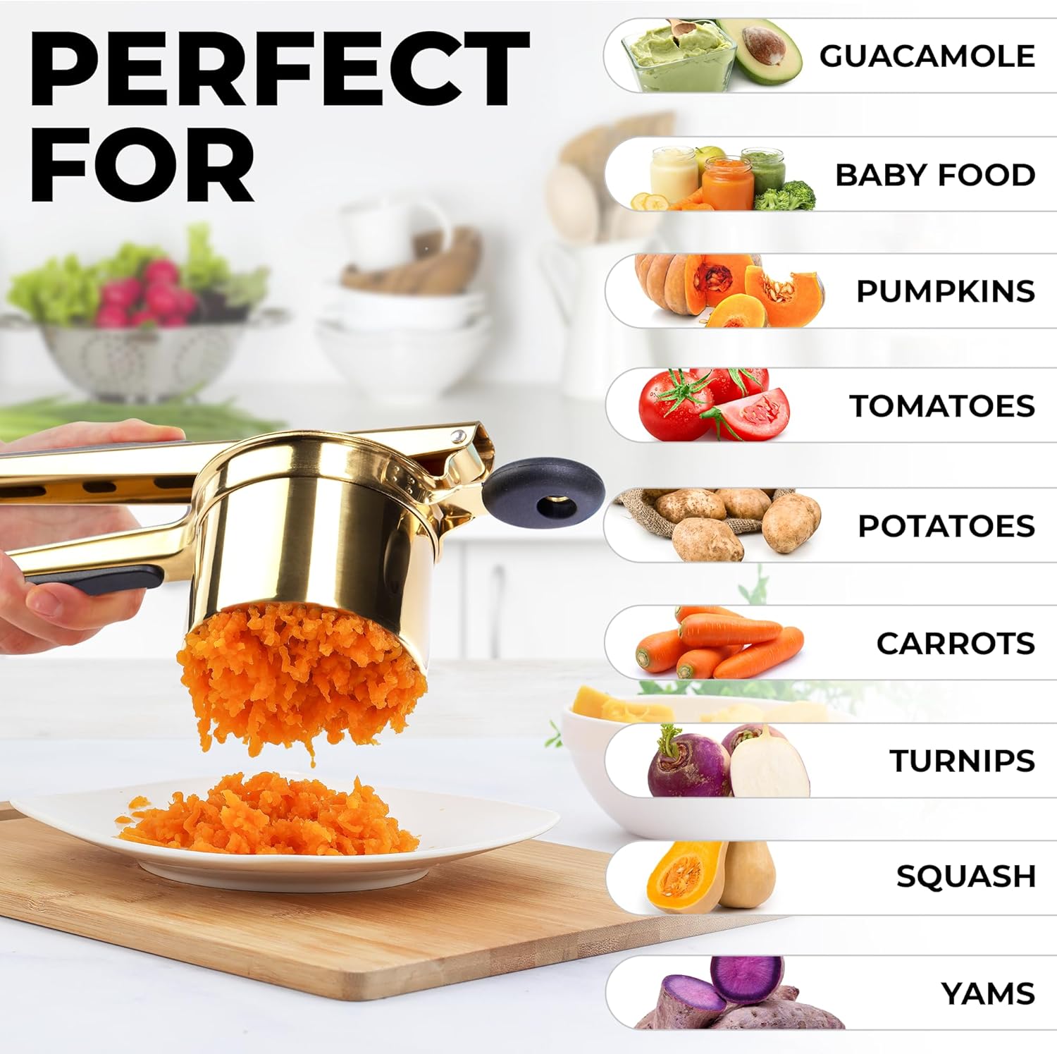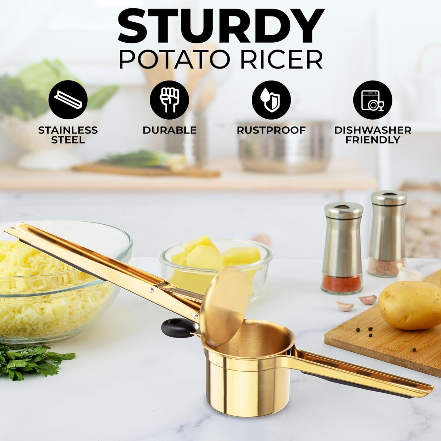 Zulay Kitchen Premium Large 15oz Potato Ricer, Heavy Duty Professional Stainless Steel Potato Masher and Ricer Kitchen Tool, Press and Mash Kitchen Gadget - Gold/Black