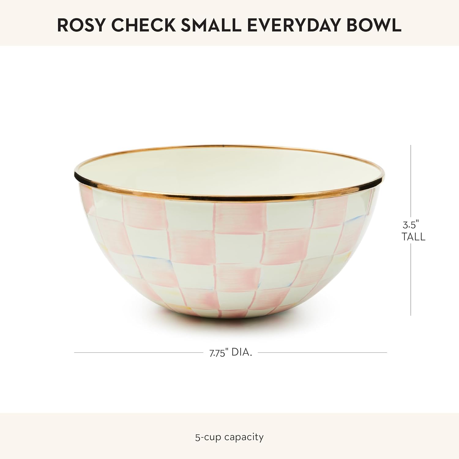 MACKENZIE-CHILDS Enamel Everyday Bowl, Serving Bowl for Entertaining, Small, Pink-and-White Rosy Check, Set of 1