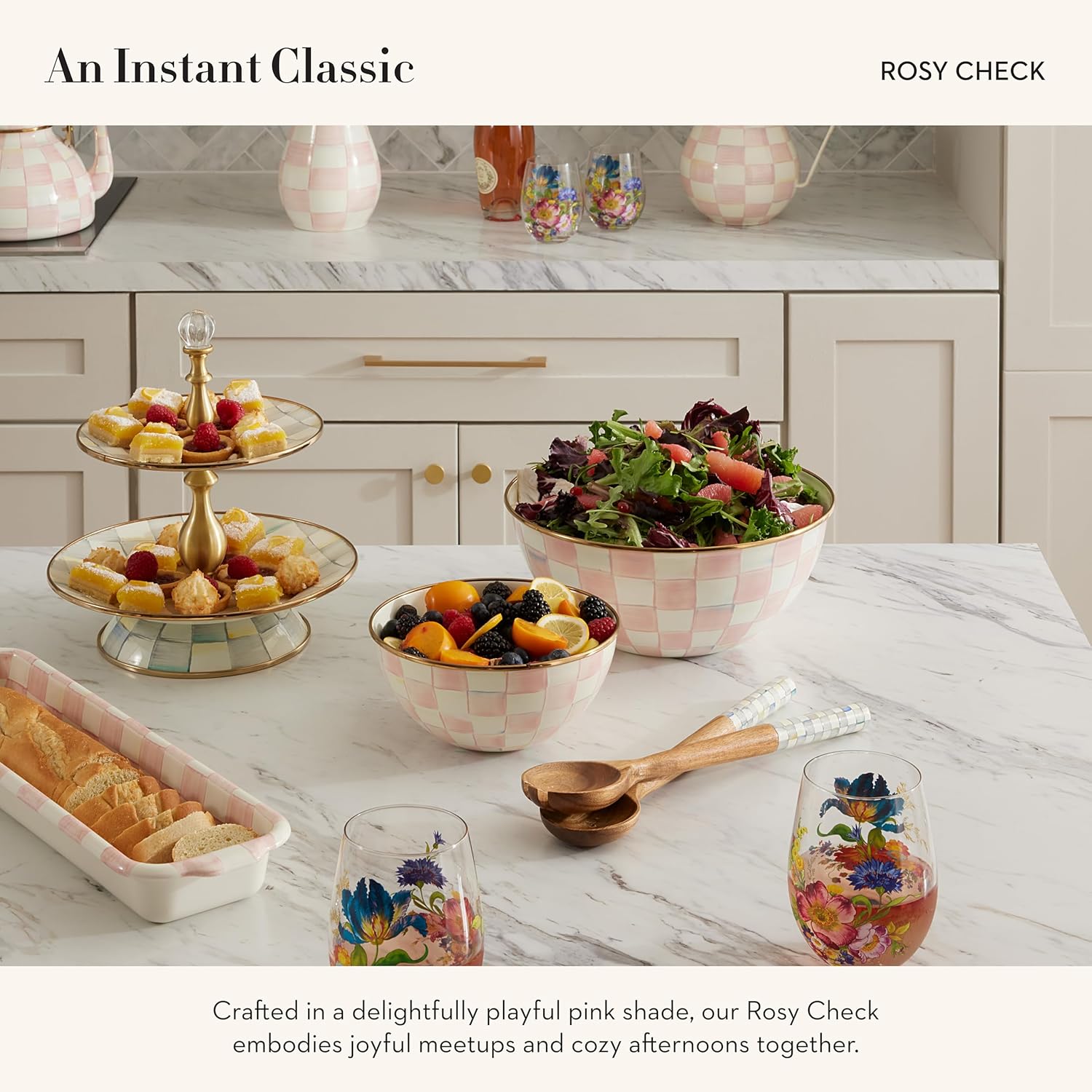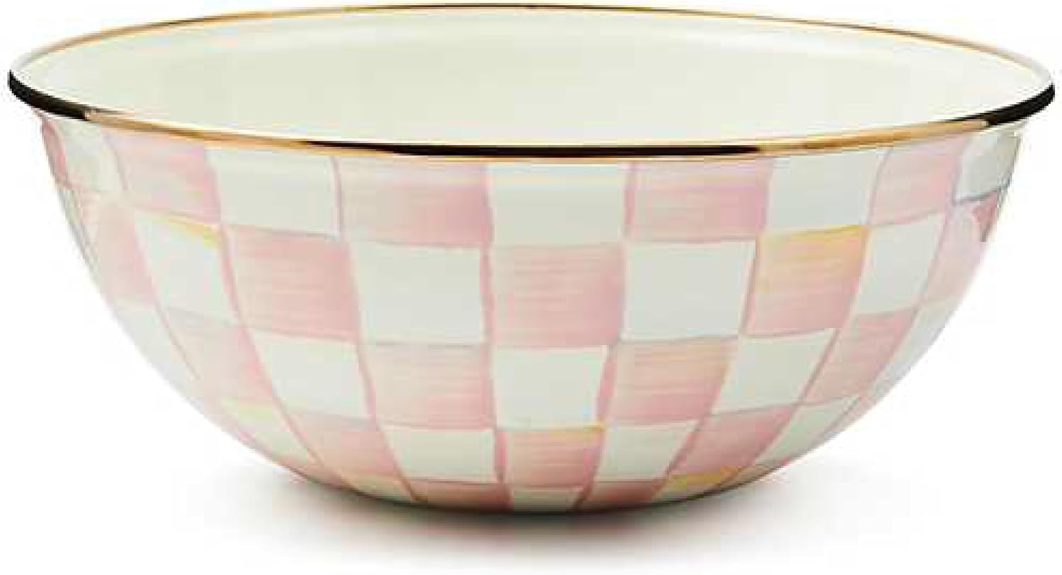 MACKENZIE-CHILDS Enamel Everyday Bowl, Serving Bowl for Entertaining, Medium, Pink-and-White Rosy Check, Set of 1