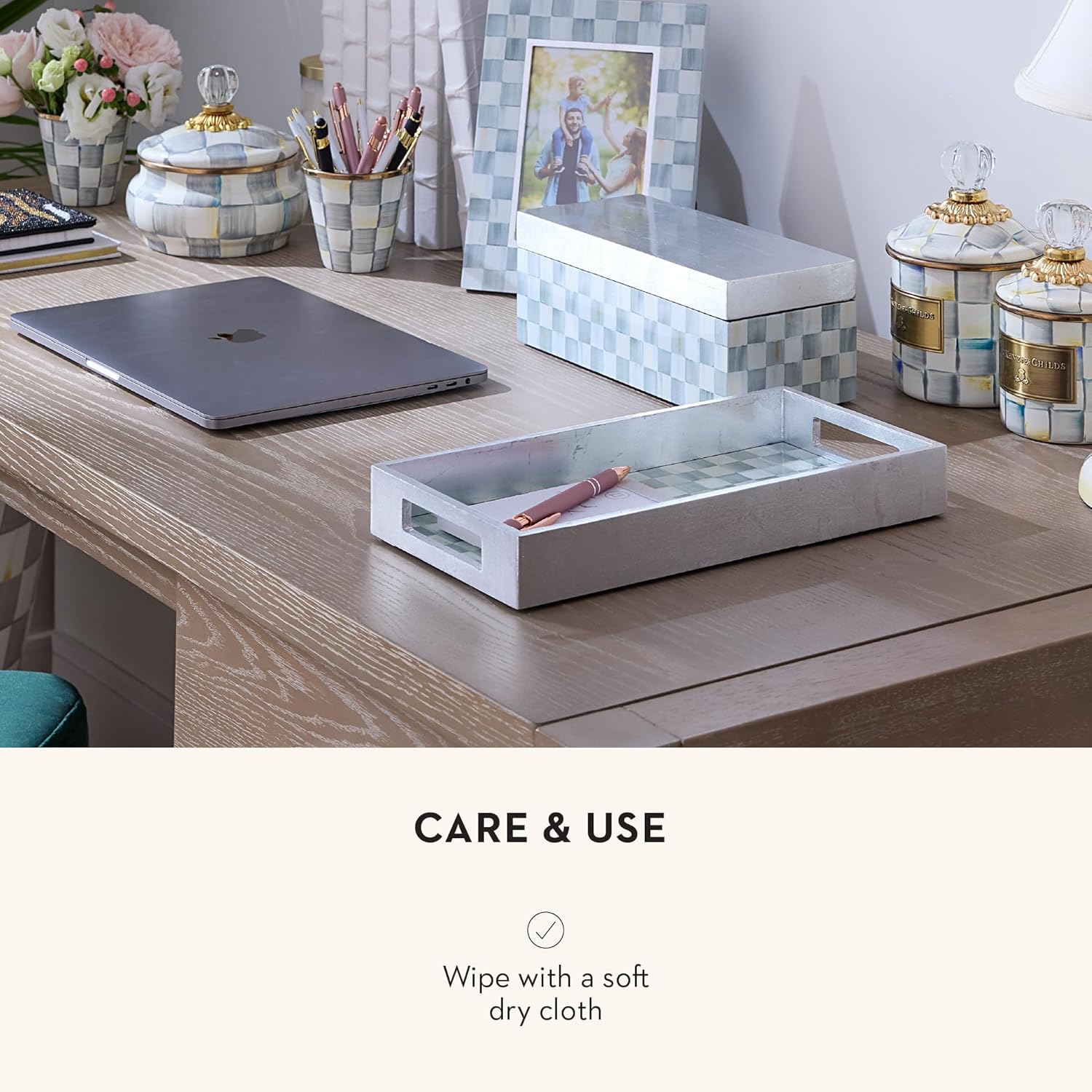 MACKENZIE-CHILDS Lacquer Vanity Tray with Handles, Rectangular Tray for Dresser and Home Decor, Gray-and-White Sterling Check