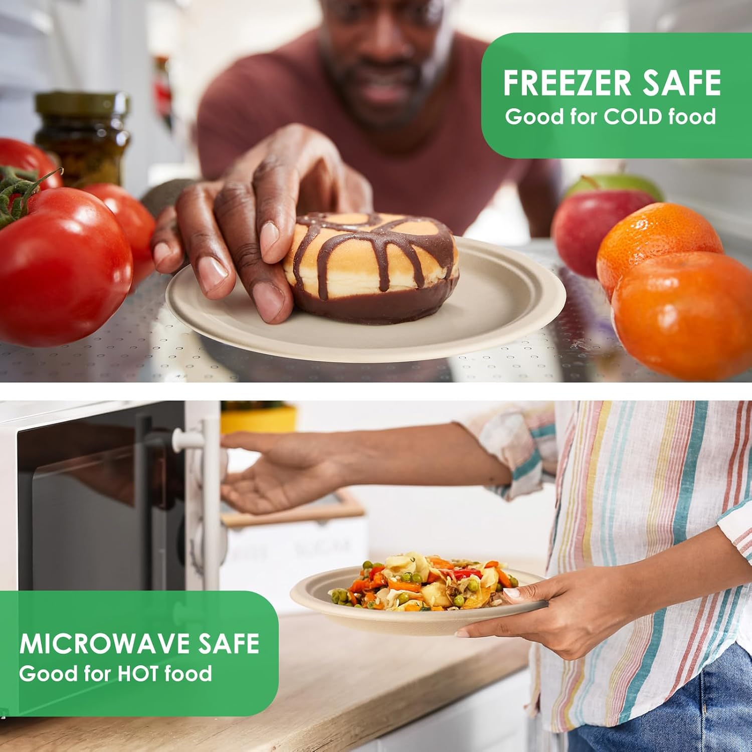 - 【100% Compostable】All Gezond paper plates are made from 100% compostable and sustainable sugarcane fibers. Complies with ASTM D6400, D6868 standards. Suitable for industrial compost (1-6 months) and home compost (composting time varies by household)