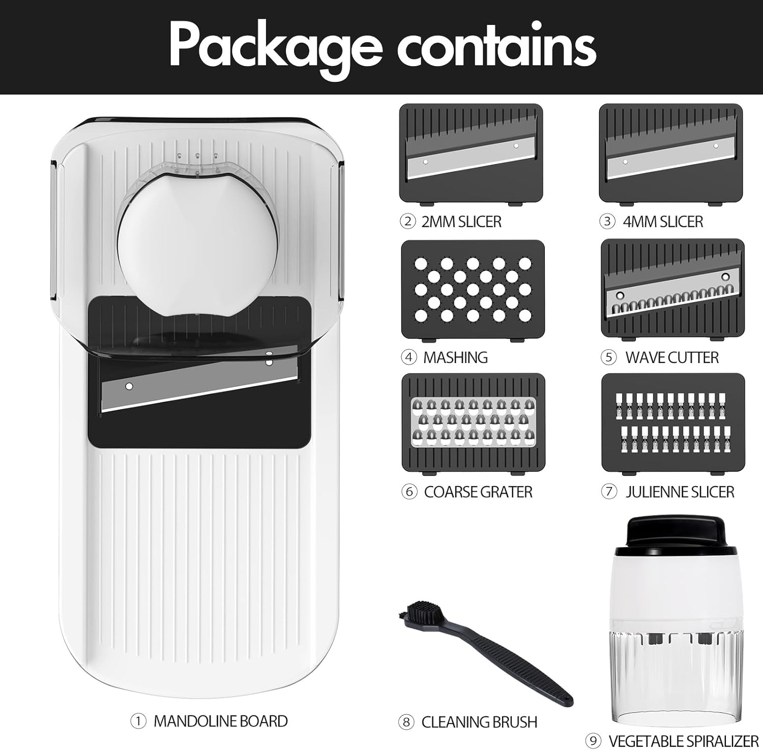 Cambom Mandoline Slicer Vegetable Slicer Spiralizer With 2 L Container for Potatoes, Tomatoes, Cucumbers, Carrots With 6 Blades White
