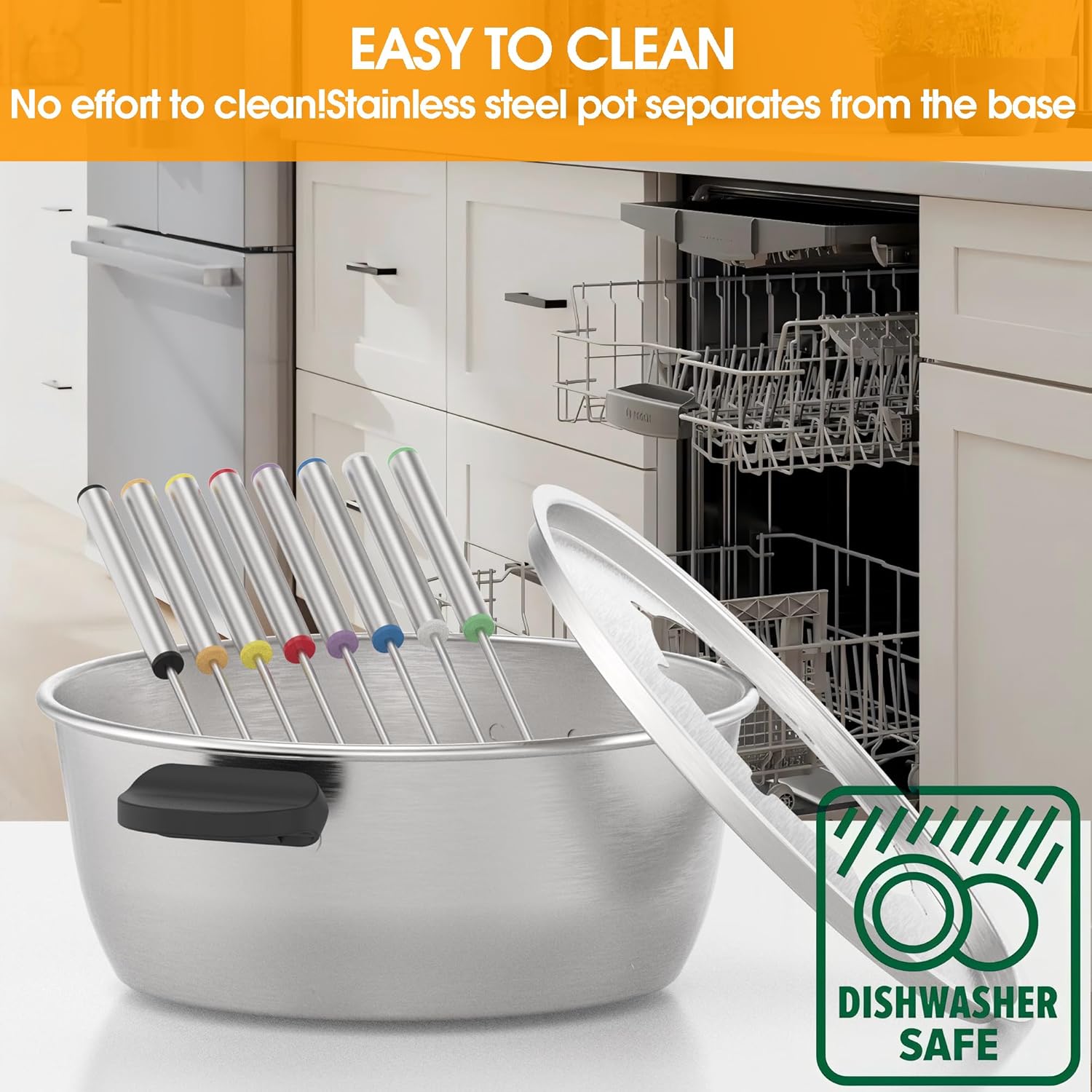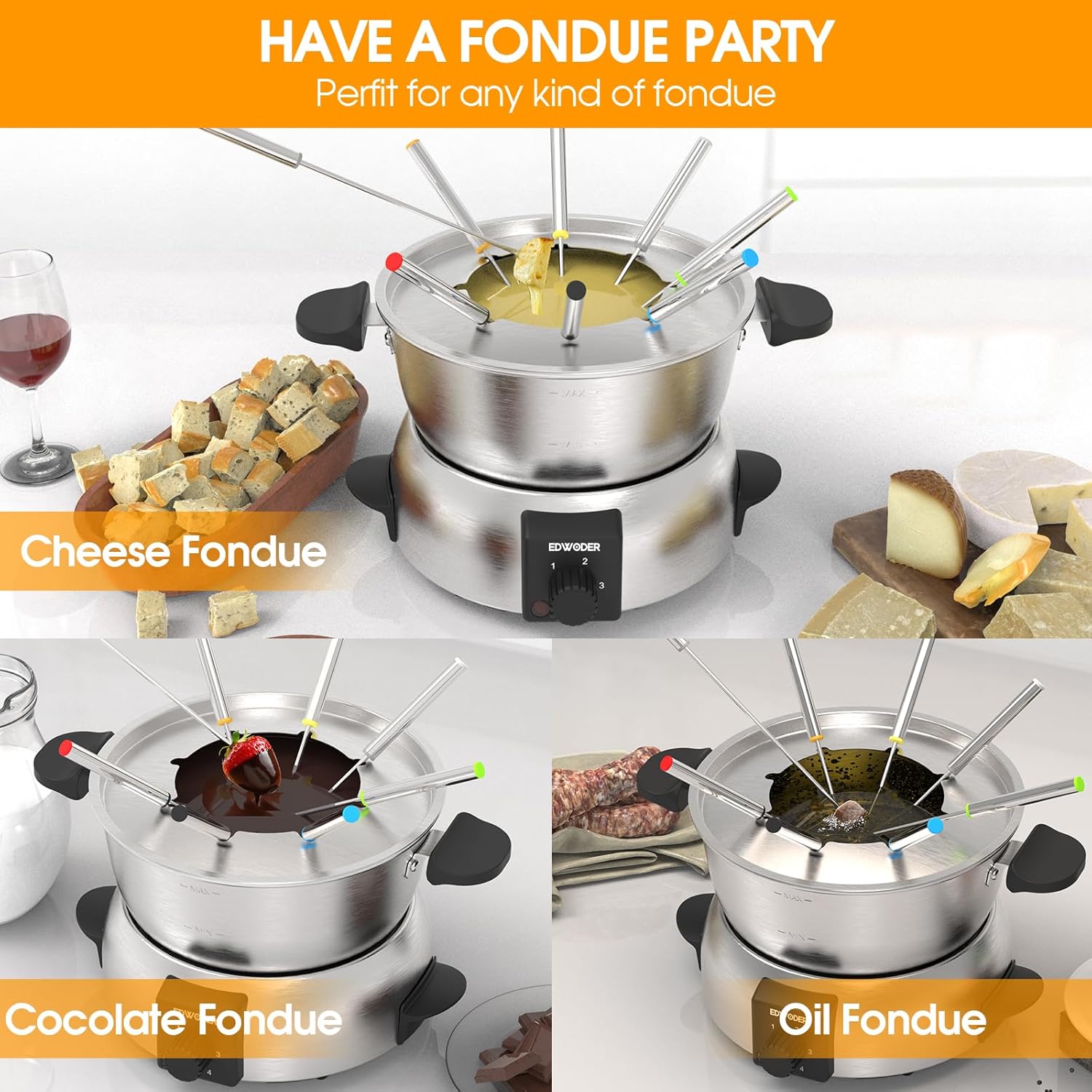 Electric Fondue Pot Set,2-Quart 1000-Watt Stainless Steel Fondue Maker with Temperature Control,8 Forks,Perfect for Chocolate, Cheese, Caramel