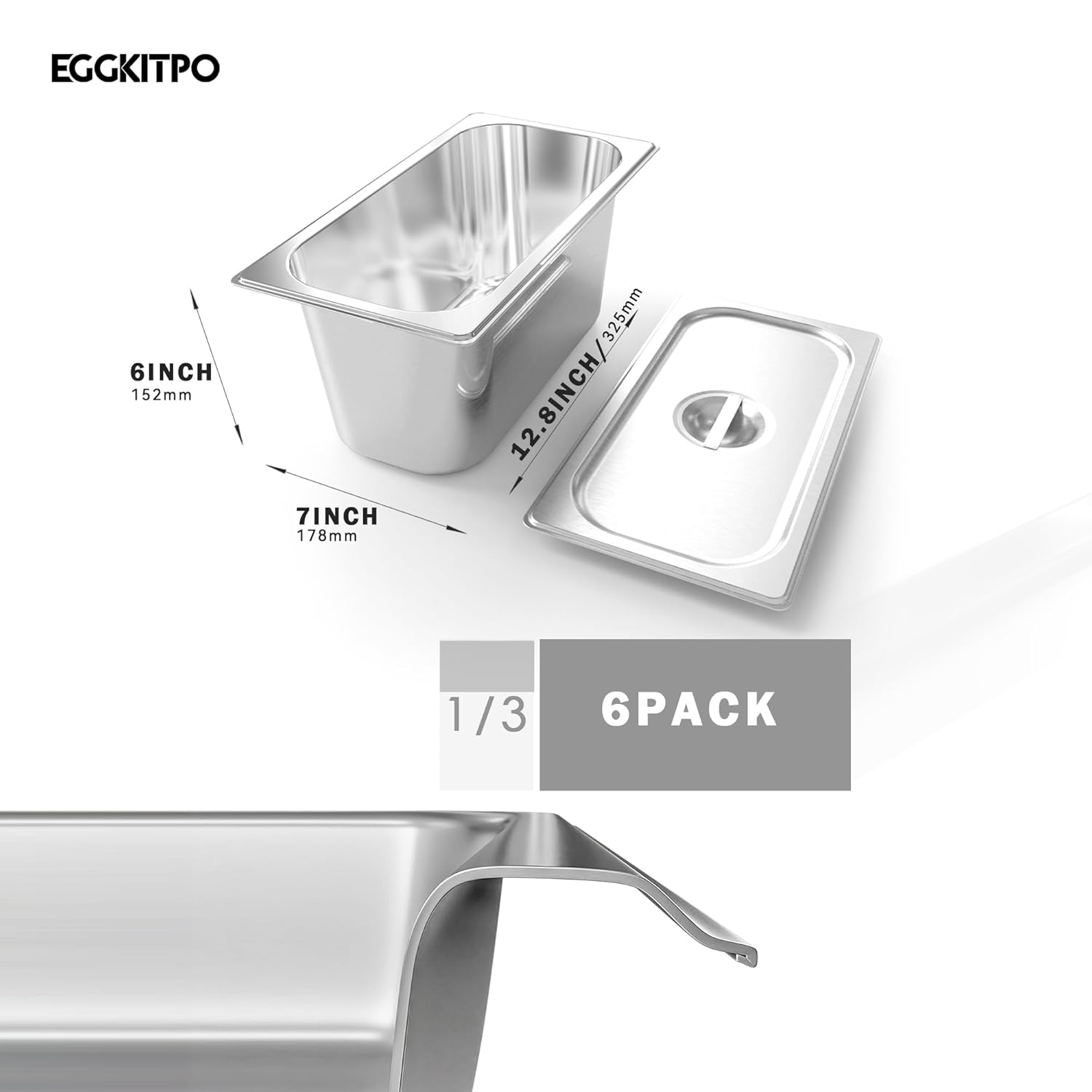 1/3 Size Steam Table Pan with Lid 6 Inch Deep Hotel Pan Commercial Stainless Steel Food Pan with Cover 6 Pack Chafing Pans for Buffet Party and Restaurant Supplies