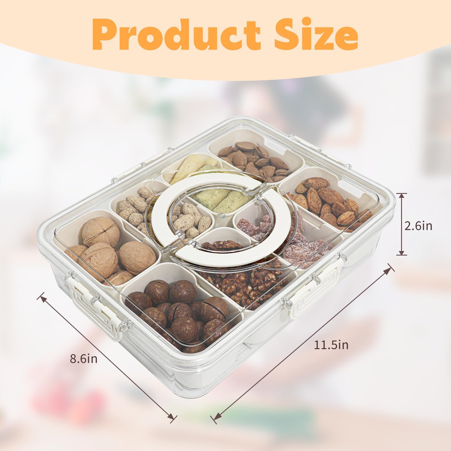 Divided Serving Tray with Lid and Handle,8 Compartments Snacks Box,Snack Fruit Tray,Veggie Tray,Portable Platter for Candy Fruits Nuts Snack Party Entertaining Picnic(2 PCS)