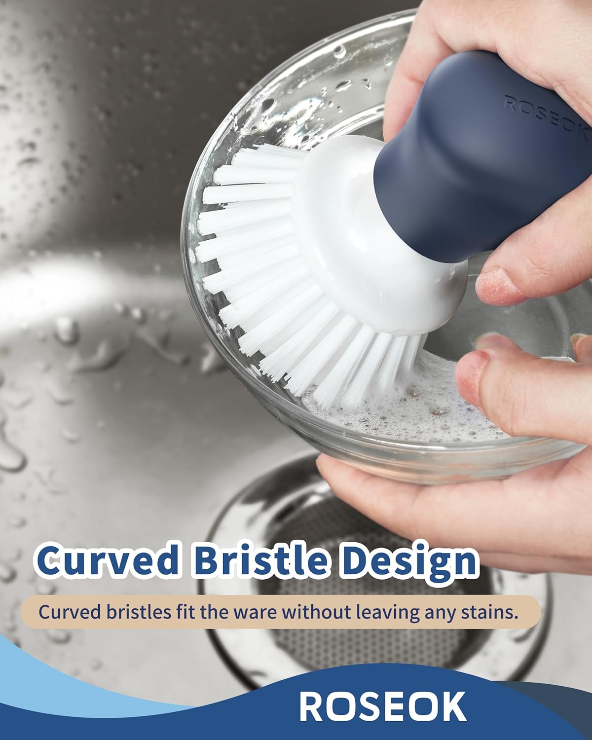 - Perfect for Kitchen: ROSEOK palm brush is ideal for cleaning dishes, pots, non-stick pans, baking trays, sinks and so on. No more greasy plates in the kitchen with the help of ROSEOK palm brush!