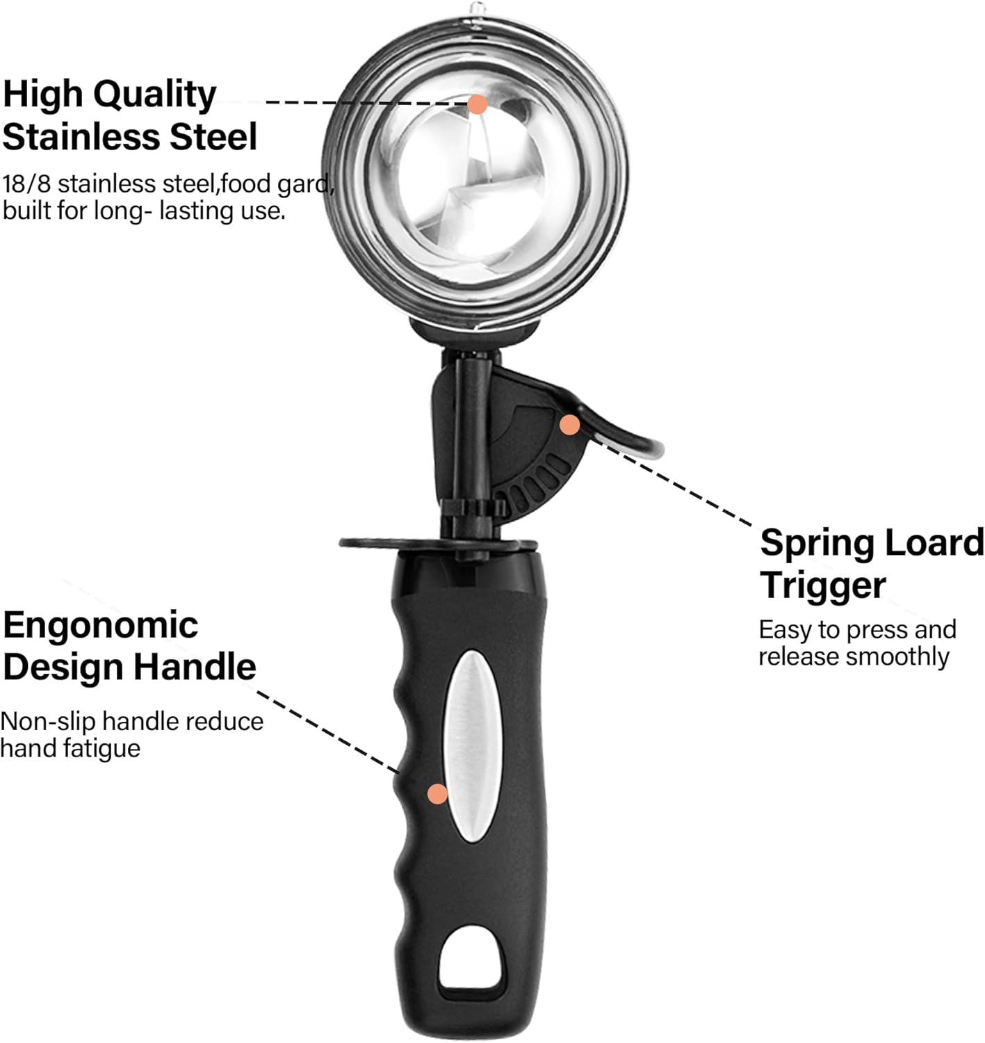 - Experience The Magic of Making Round Balls! Place the spoon on your food and with a gentle scrape, you can easily scoop out a perfectly sized ball for a sophisticated look. This great kitchen tool definitely helps you do a great job and makes your prep work easier and more relaxed. Also perfect as a gift for a friend who enjoys cooking and baking. The perfect combination of practicality and durability will not let your friend down!