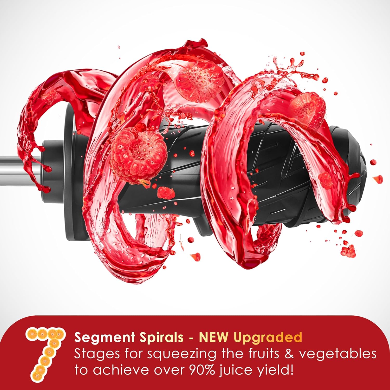 - Less Oxidation, More Nutrition: The upgraded spiral system to open up each cell for maximum juice yield.No need to add water like other juicer. No no need to filter the pomace manually. From now on, enjoy the pleasure of pure juice. The juice retains its original taste and flavor. Enjoy the pleasure of less pulp, enjoy a more healthy life.
