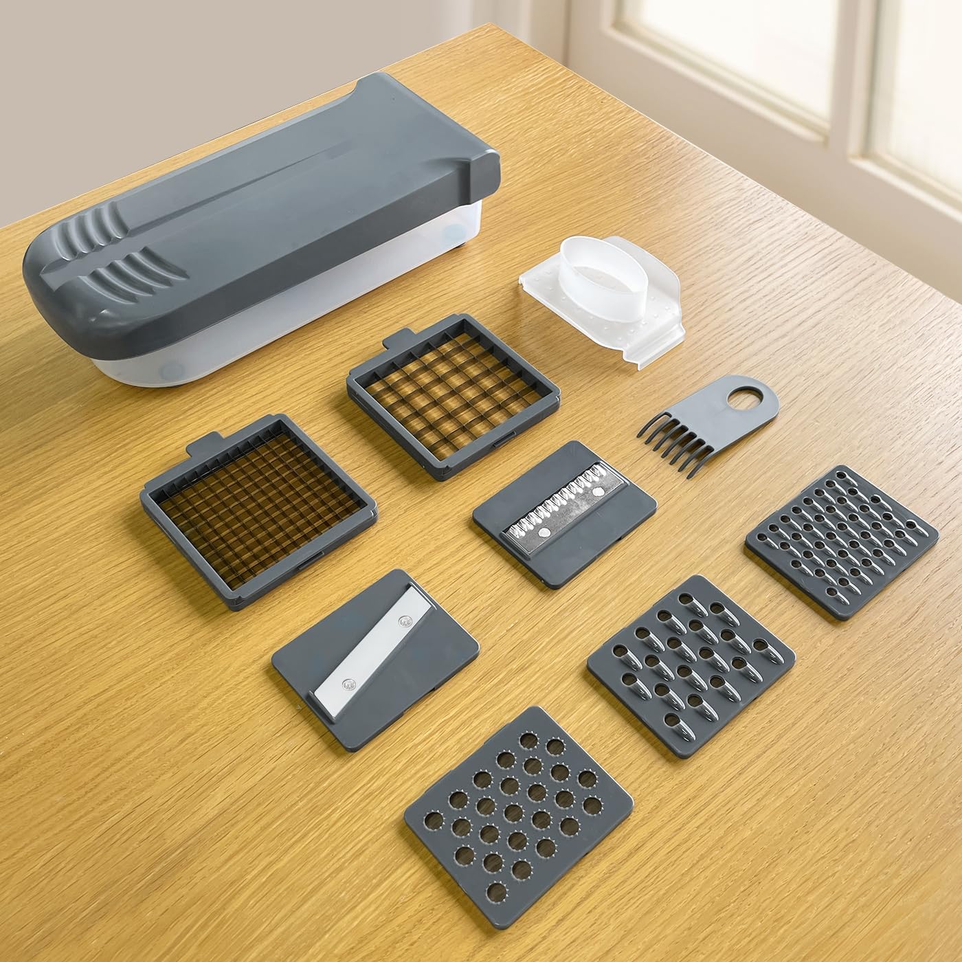 LHS Vegetable Chopper Multifunctional Food Chopper Onion Chopper Vegetable Slicer Dicer Cutter Potato Cutter Veggie Chopper with Container(10 in 1, Grey)