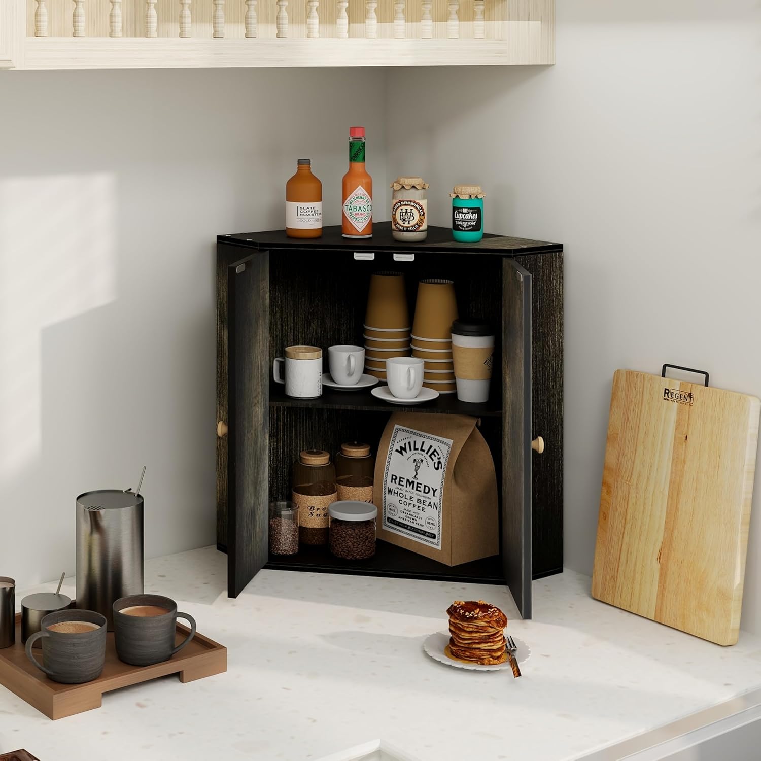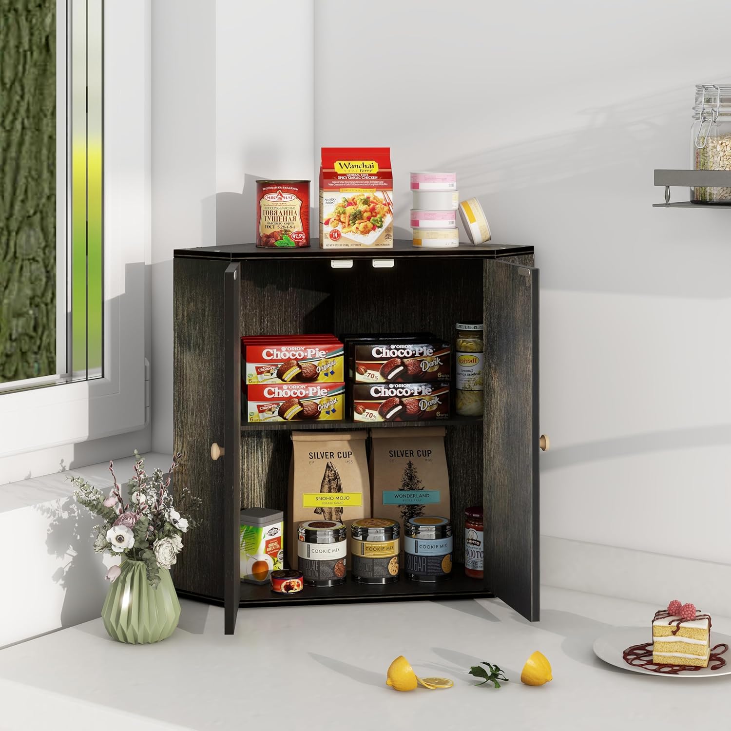 Corner Bread Box for Kitchen Counter Double Layer Bamboo Bread Storage Container Large Capacity Bread Storage Bin Farmhouse Breadbox Organizer (Antique Black)