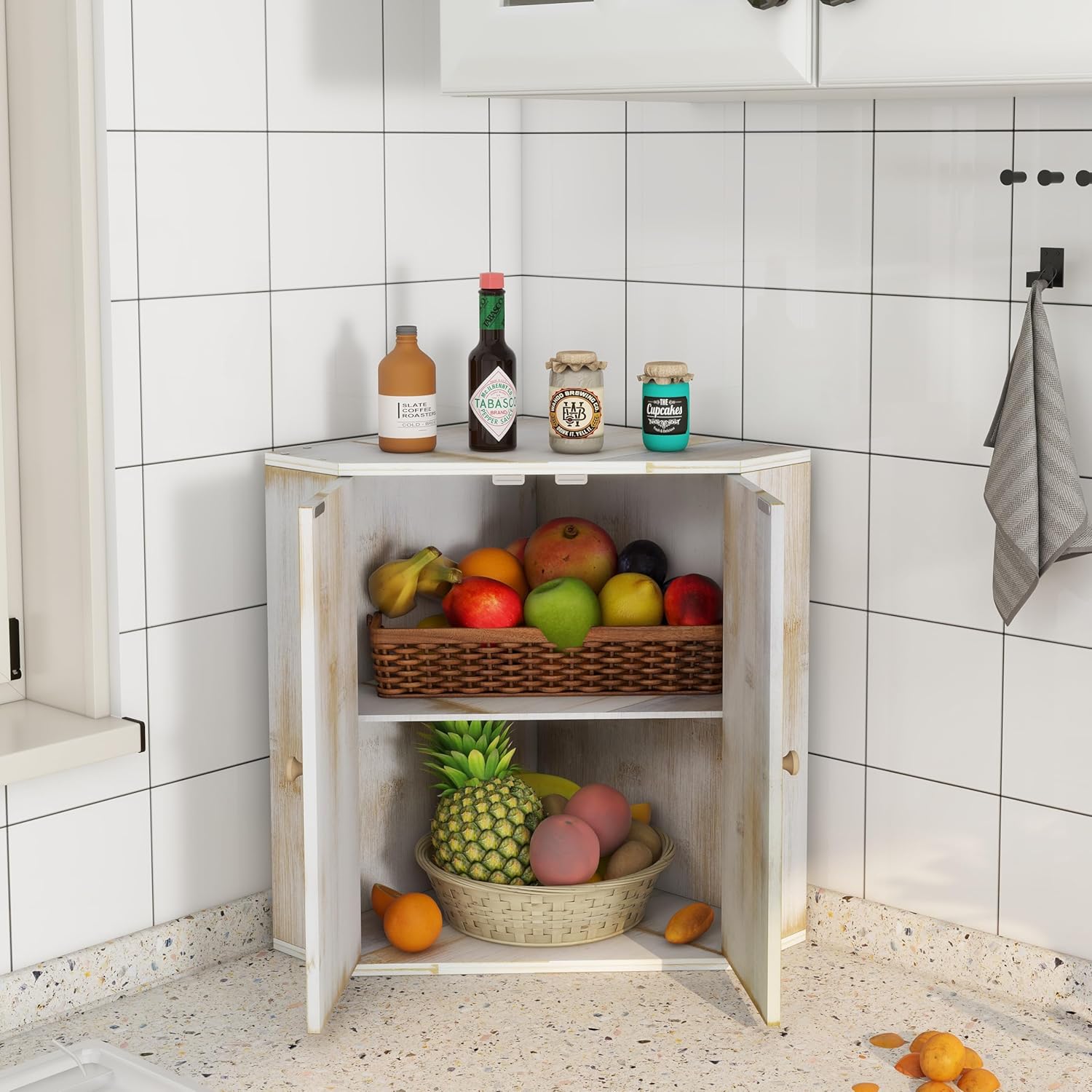 Corner Bread Box for Kitchen Counter Double Layer Bamboo Bread Storage Container Large Capacity Bread Storage Bin Farmhouse Breadbox Organizer