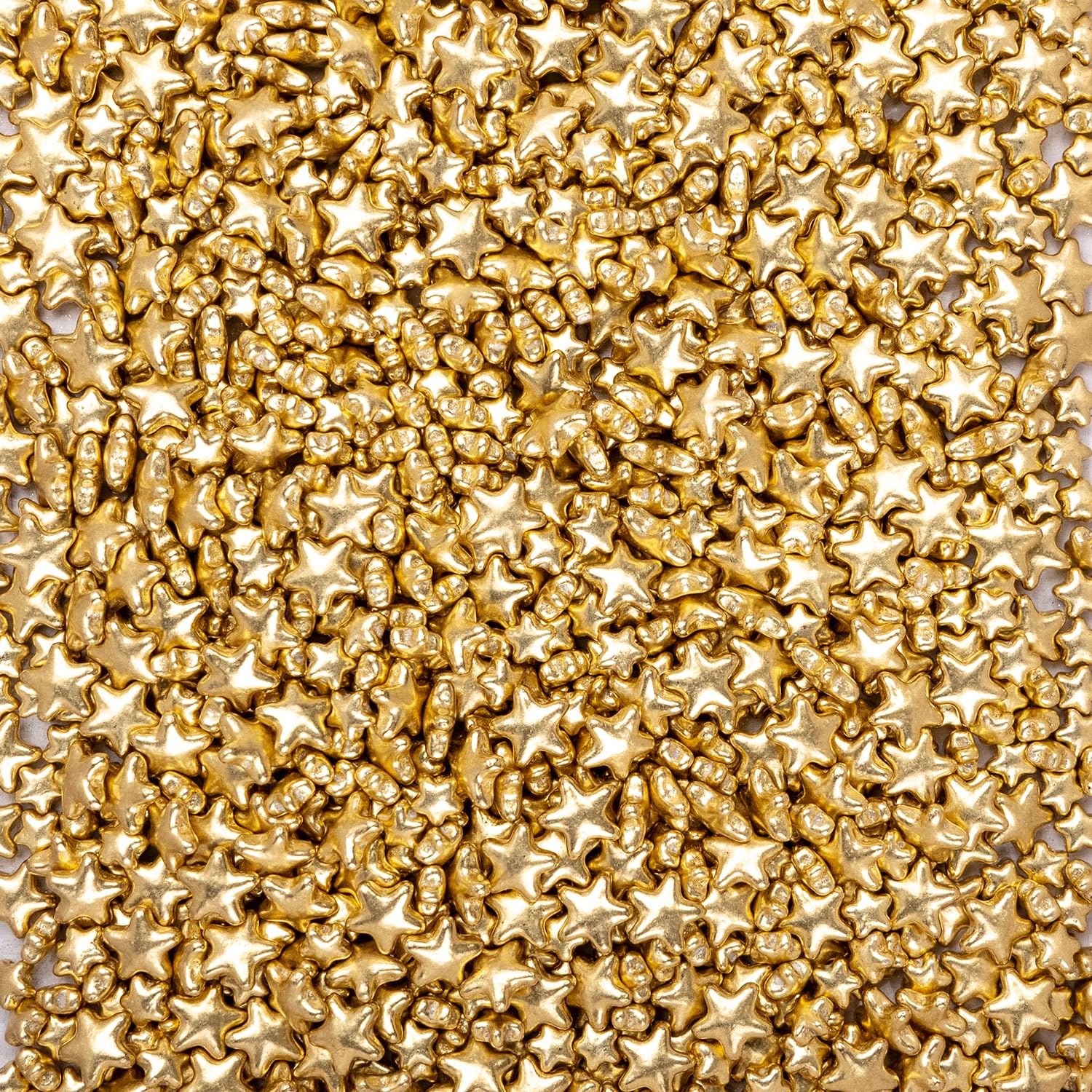 Dazzjoy Edible Gold Sprinkles, Star Sugar Candy Sprinkles for Cupcake Decorating, Food Grade, 4.23oz, Mix Size, Cupcake Toppers, Cake Decorations, Wedding Party Supplies
