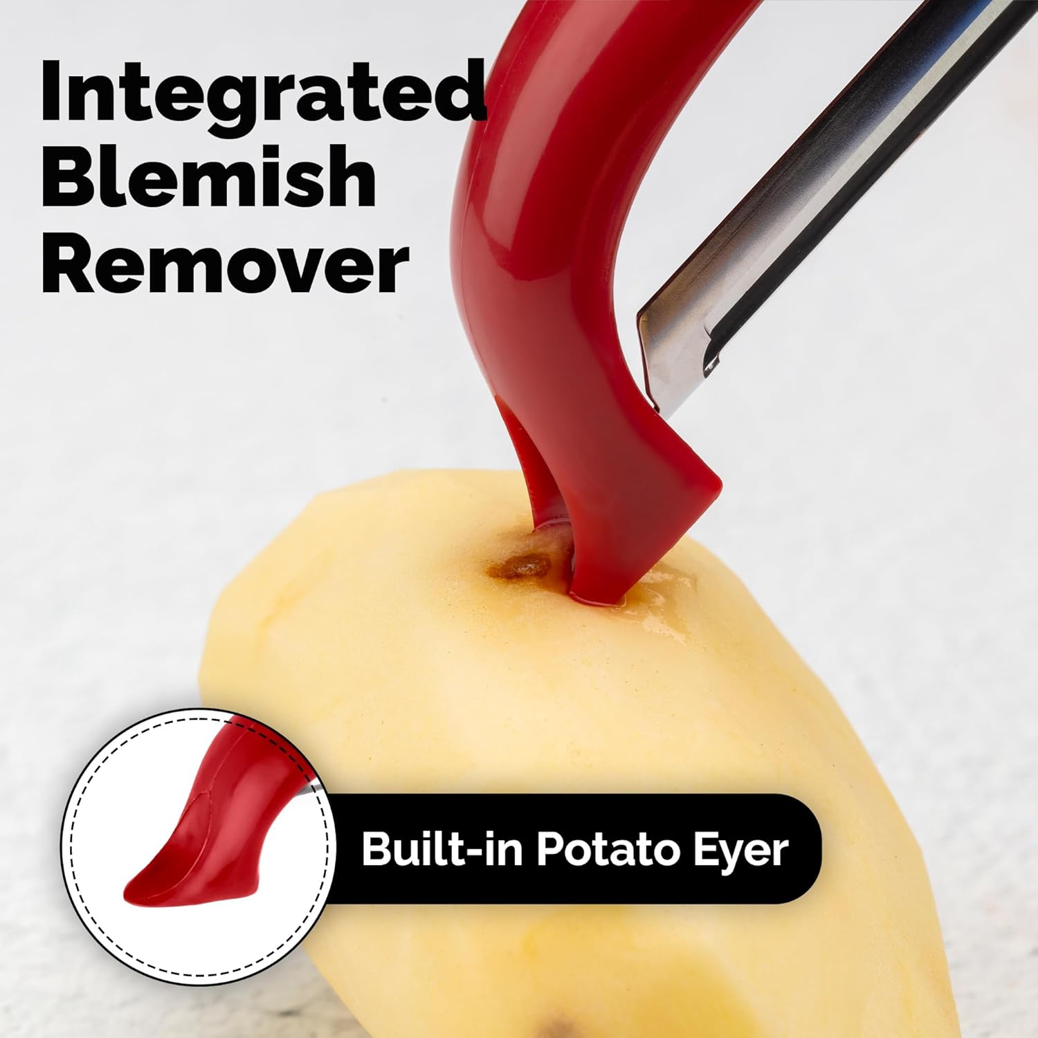 - PEELING MADE EASY: Smooth and effortless peeling starts with our vegetable peeler! With a swivel design, this peeler is made with dual sharp blades that glide through the surface of fruits and vegetables. The built-in blemish remover further adds to your convenience.