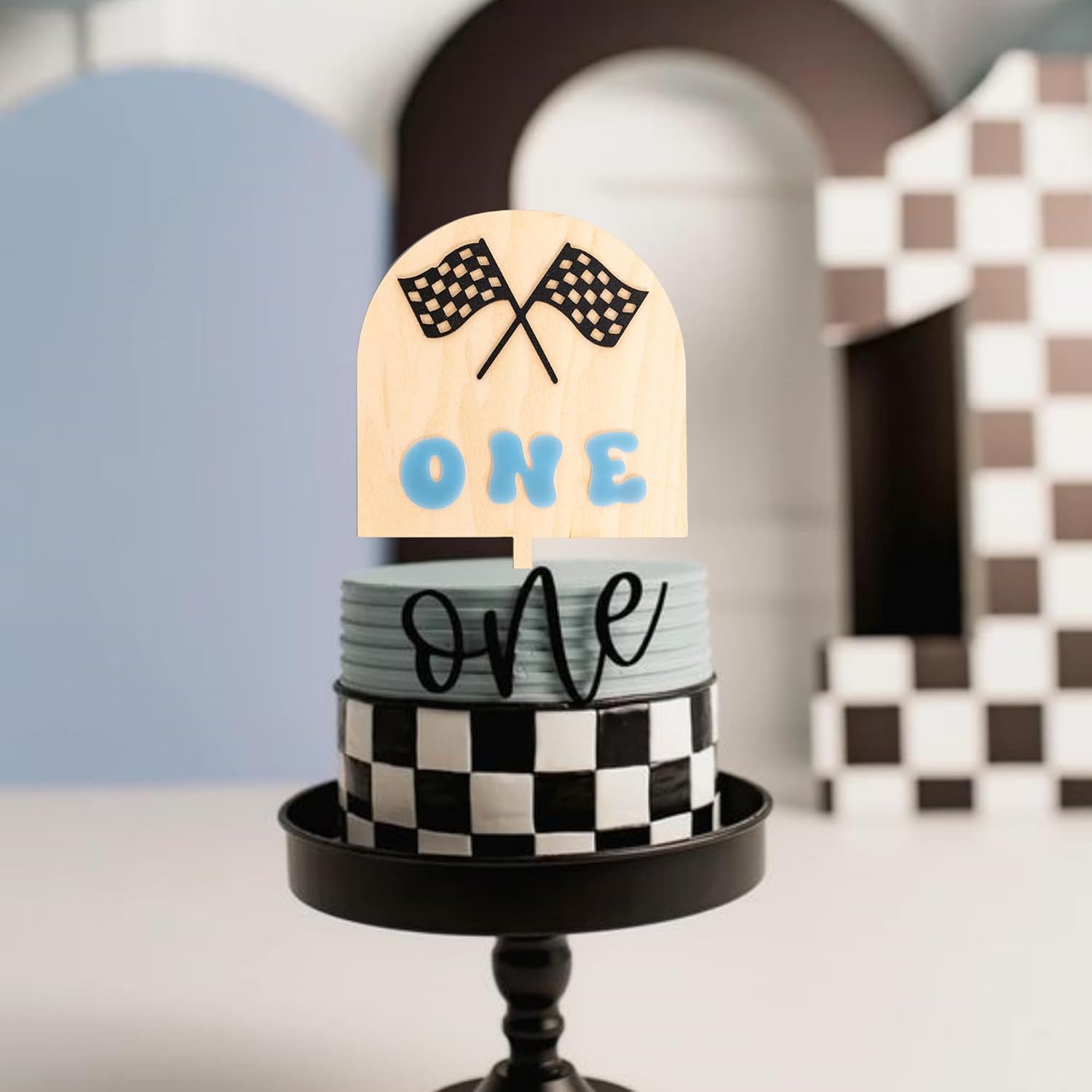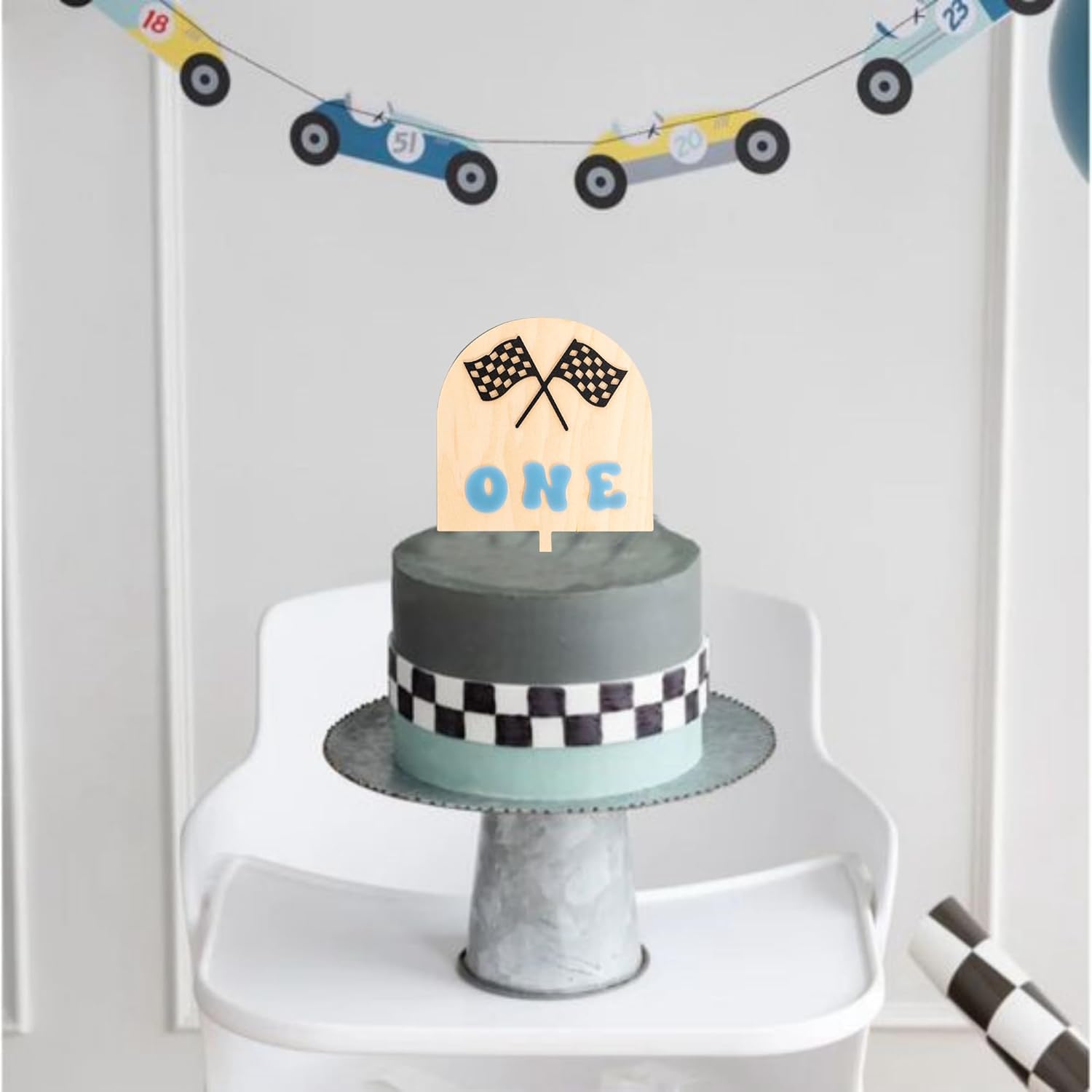 - Adorable Checkered Flag Design - Zoom into birthday fun with our race car-inspired cake topper, featuring vibrant flag patterns! Designed to matching Race Car, One Fast Party, Vintage Race Car, Racing Theme Birthday, Growing Up One Fast or Checkered Flag.