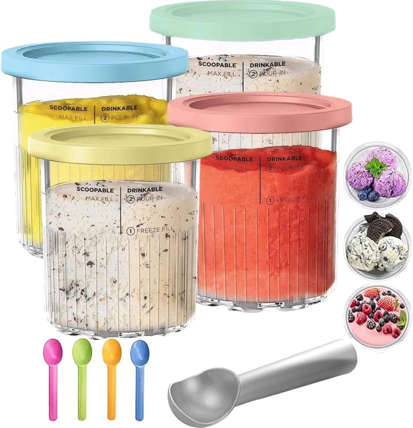 4 Pack Creami Deluxe Pints and Lids,Extra Delux Pint Containers Compatible with Ninja Creamy NC500, NC501, CN501CO Series Ice Cream Machines, 24 OZ Creami Deluxe