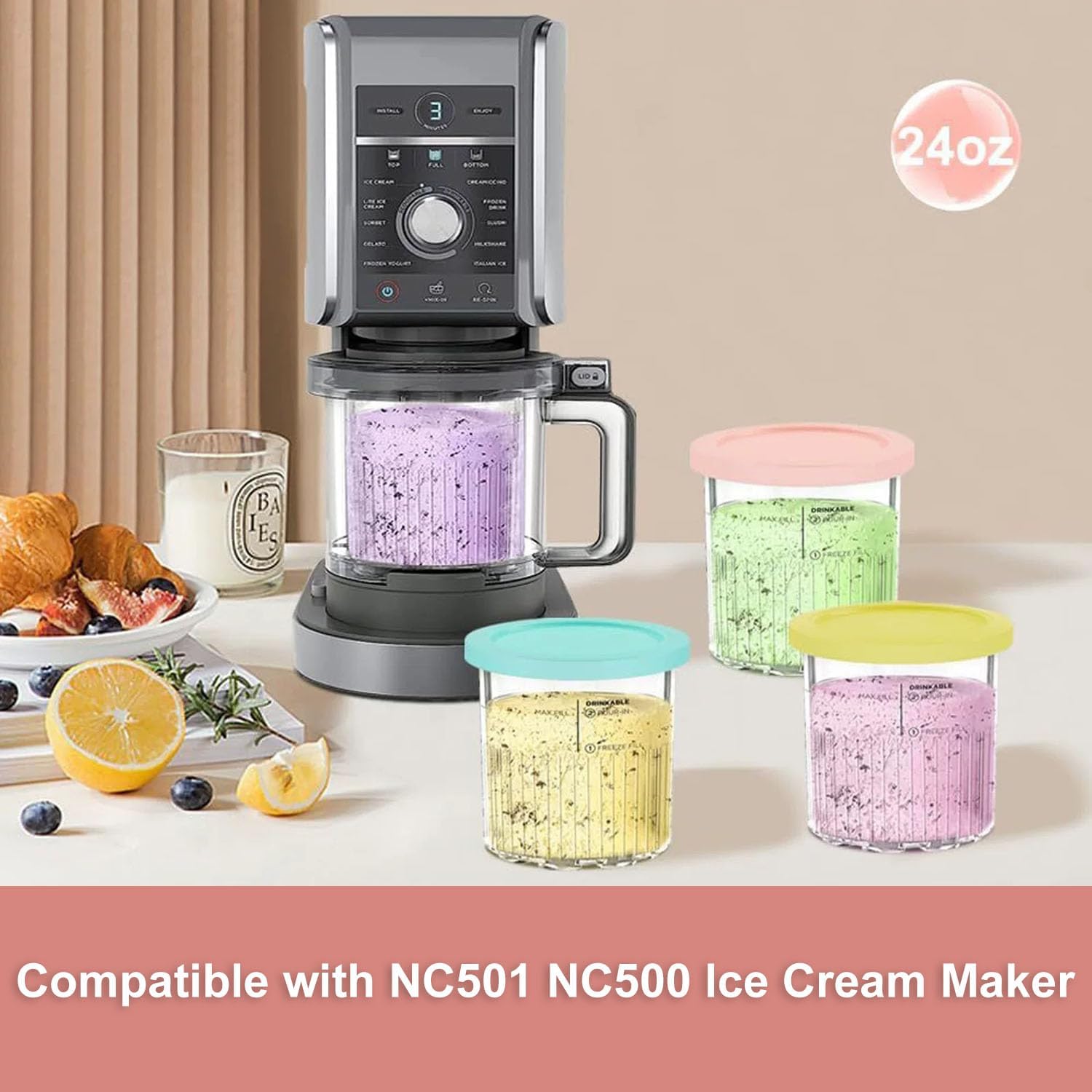 - 【24 oz. Pints Containers for Ninja Creami 】This 24oz Creami Pints Cup Compatible with Ninja NC501, NC500Series Ice Cream Maker