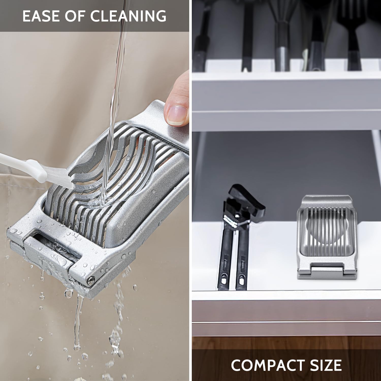 - Made To Split Egg Easily: Simple design that allows for easy operation and minimal effort, just put the egg into the groove of the egg cutter and sharp steel wires provide clean and even slices, makes cutting a egg a whiz, and food prep less tedious. Also can be a valentines day gifts for your kids to enjoy cooking time together