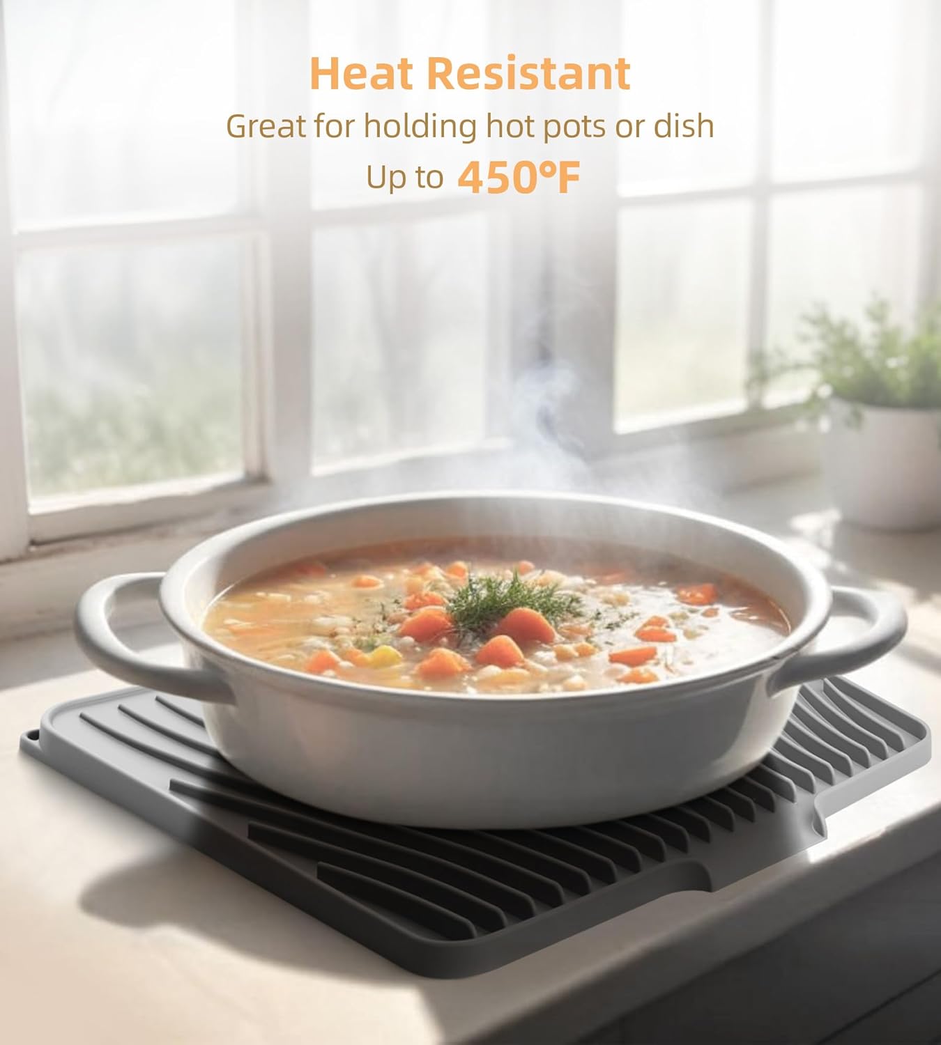 - Heat-Resistant Mat: This anti-slip mat endures temperatures from -40℉ to 450℉, serving as a holder for hot pots, baking trays, or for refrigerator storage